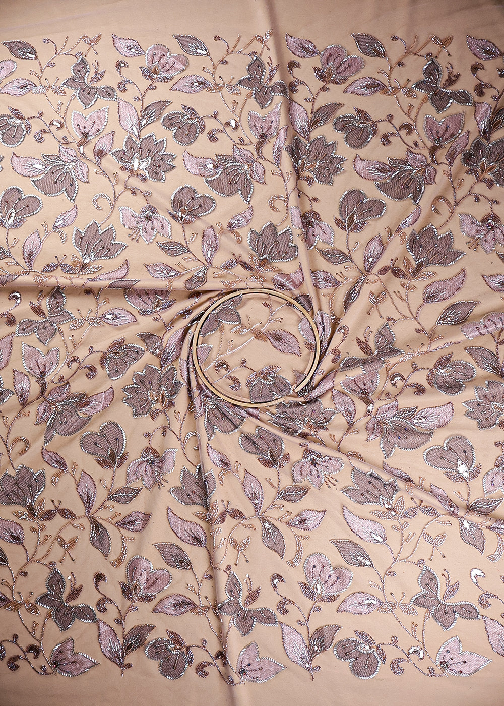Peach Imported Net Fabric With All Over Thread, Bead And Sequins Work 19415