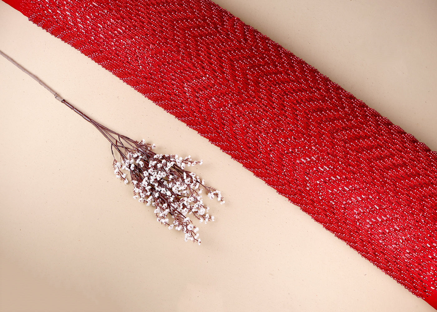 Red Imported Net Fabric With All Over Bead And Sequins Work 19235
