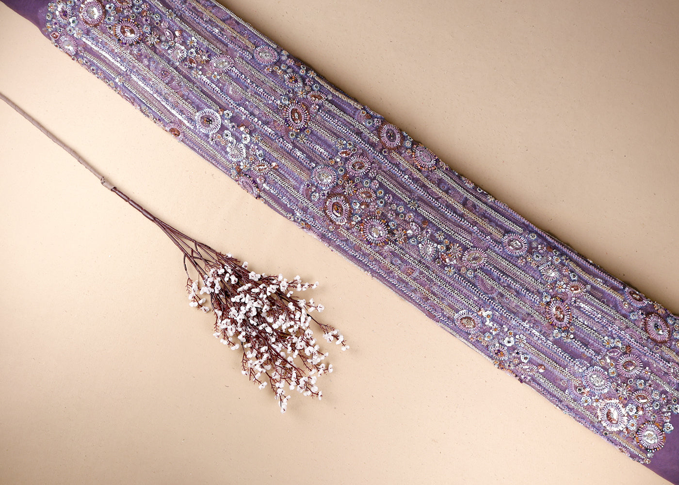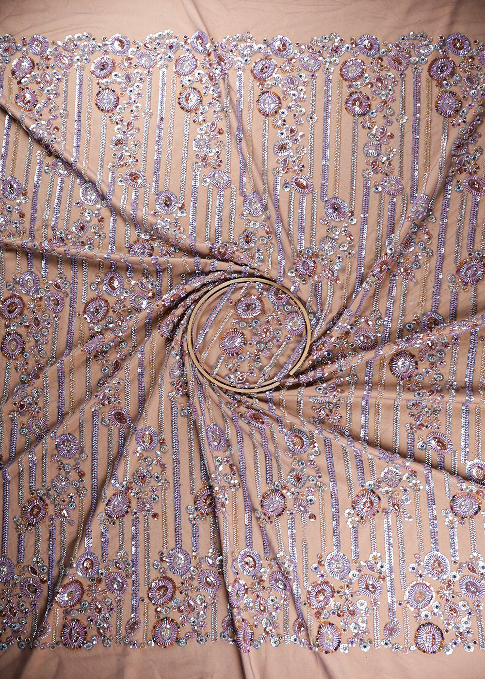 Purple Imported Net Fabric With All Over Bead And Sequins Work 19414