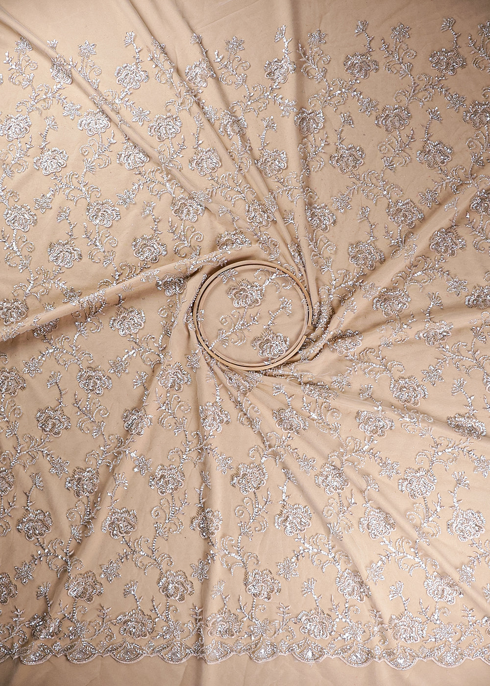 Cream Imported Net Fabric With All Over Sequins And Bead Work 19080