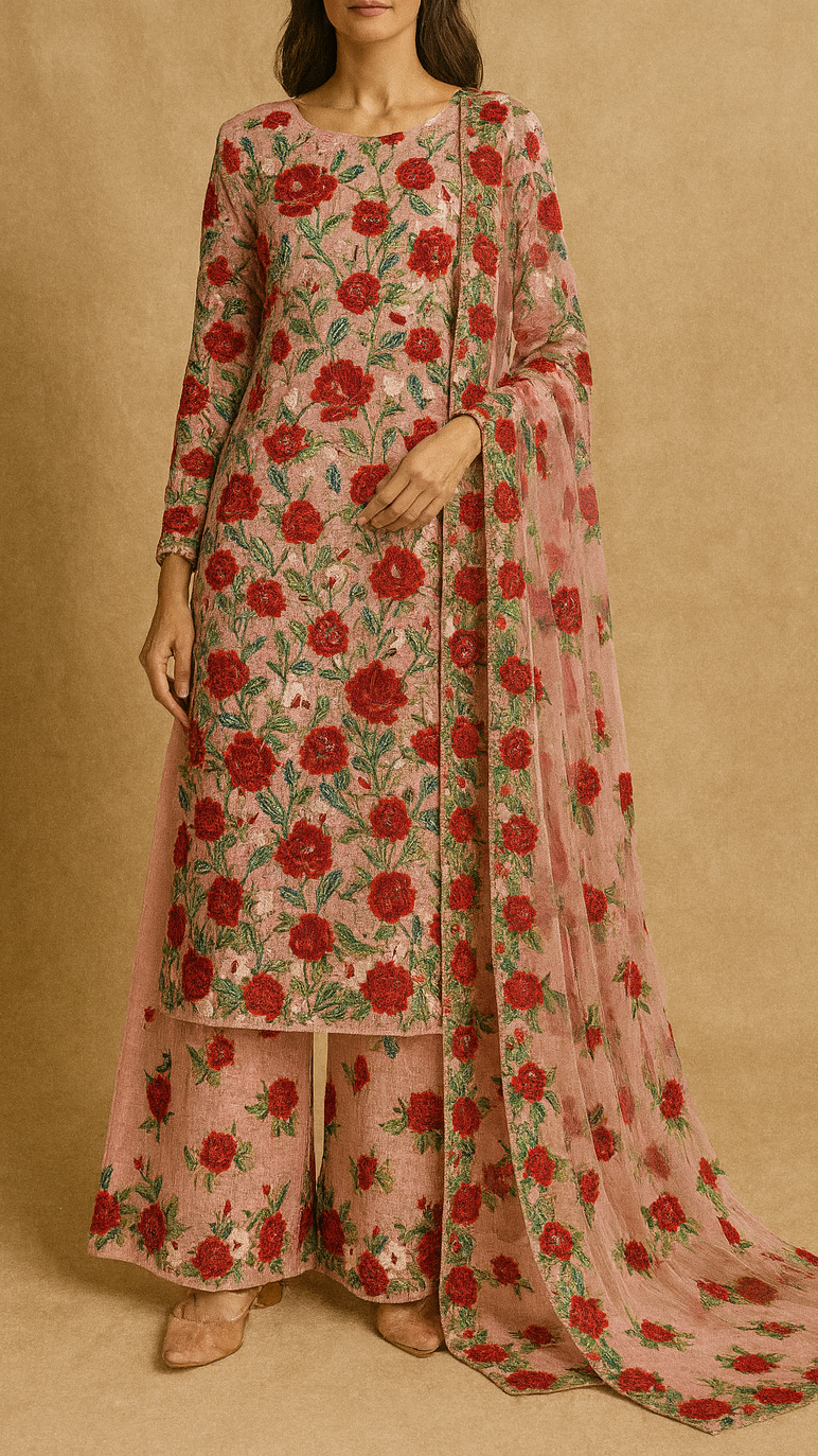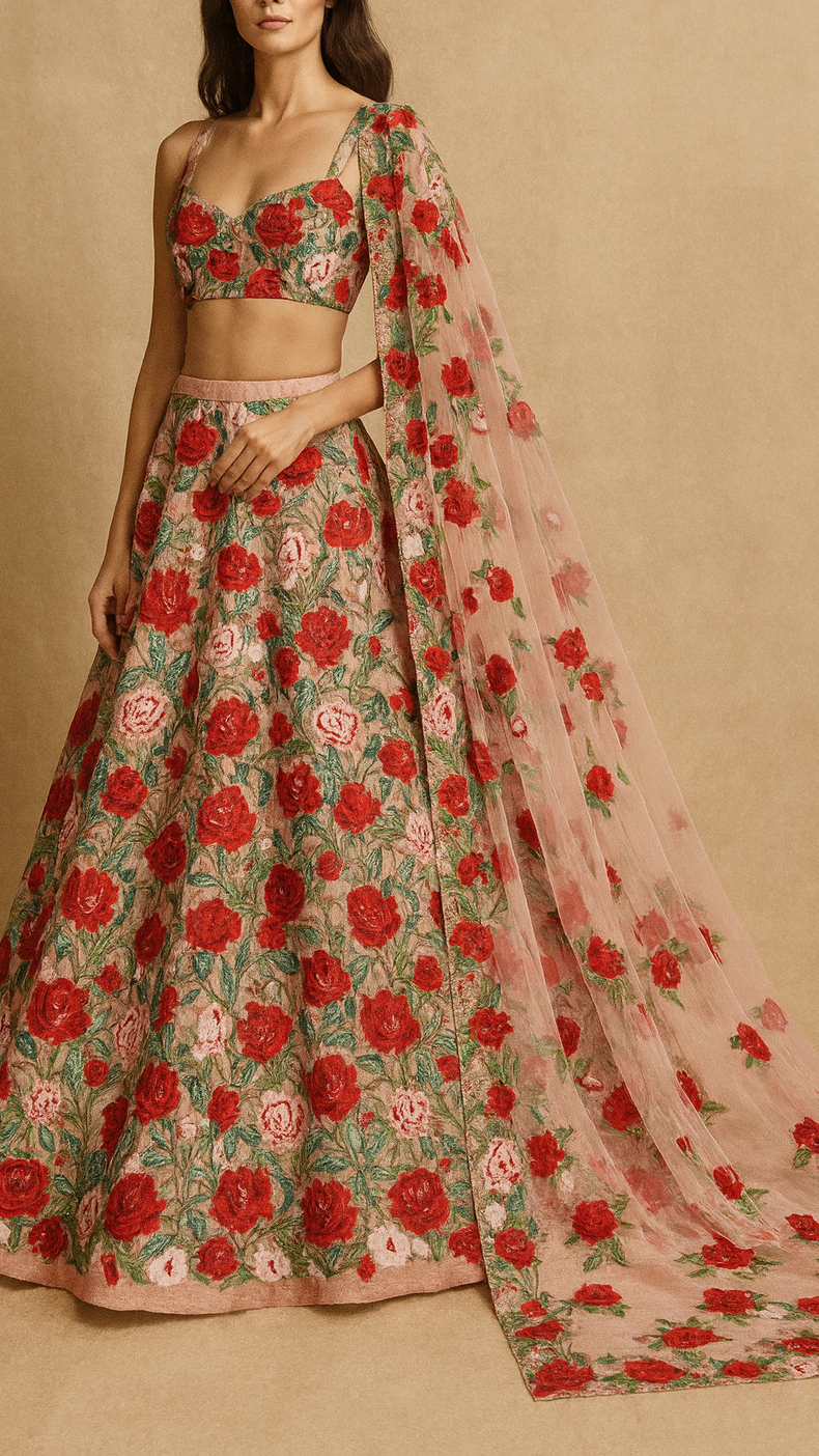 Ideal for sarees, lehengas, gowns, and dupattas, this fabric adds a soft and graceful touch to any outfit. The floral thread embroidery makes it suitable for weddings, festive occasions, and elegant evening wear.