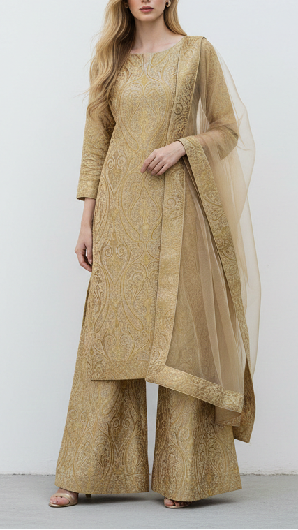 Ideal for lehengas, suits, jackets, and statement panels where richness, warmth, and detailed embellishment are essential for an elegant, premium finish.