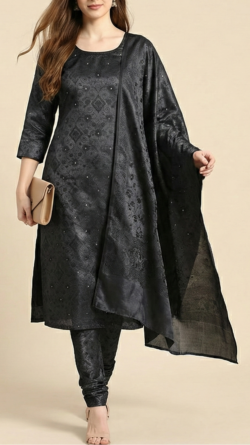 | Fabric Name | Black Banarasi Brocade Fabric With All Over Thread And Zari Handloom |