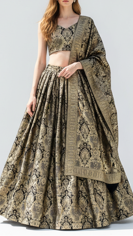 | Fabric Name | Black Banarasi Brocade Fabric With All Over Thread And Zari Handloom |