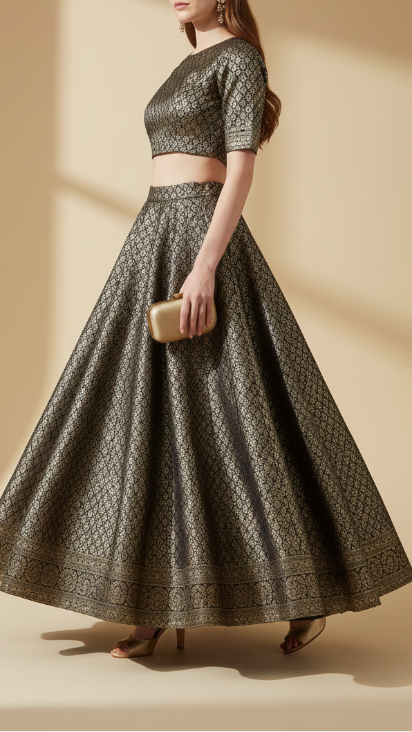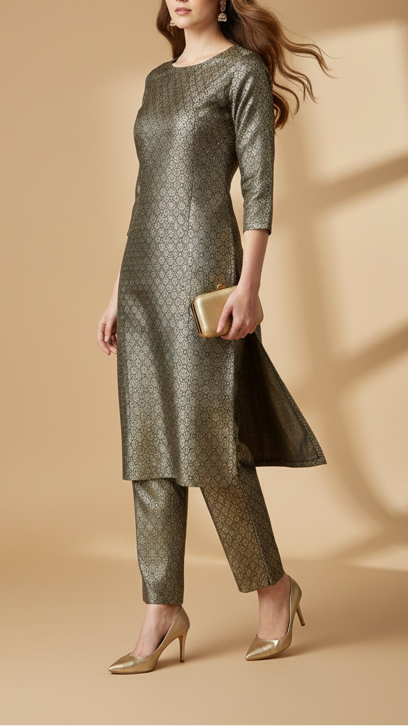 Perfect for sarees, anarkalis, jackets, ethinic jumpsuits, sherwani, etc. The rich look of this fabric is ideal for festive outfits, wedding attire & traditional wear.