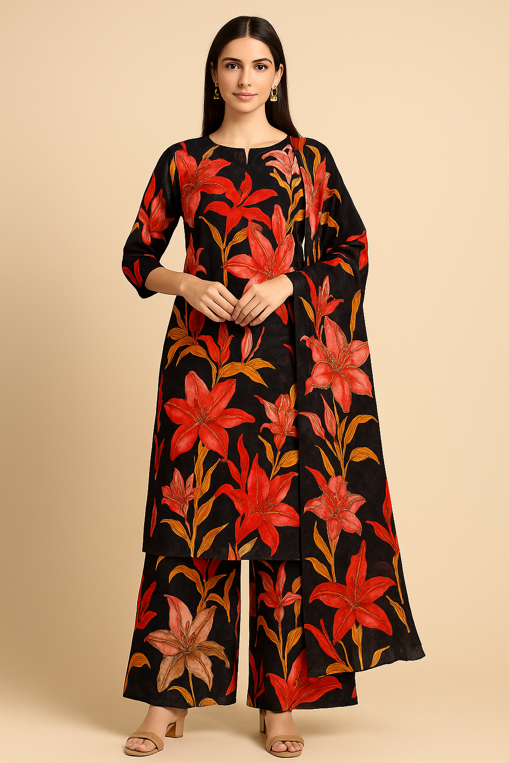 Ideal for sarees, suits, lehengas, and gowns, this fabric works well for both traditional and modern styles. Its striking floral patterns with subtle embellishments make it a versatile choice for weddings, receptions, festive gatherings, and elegant evening wear.