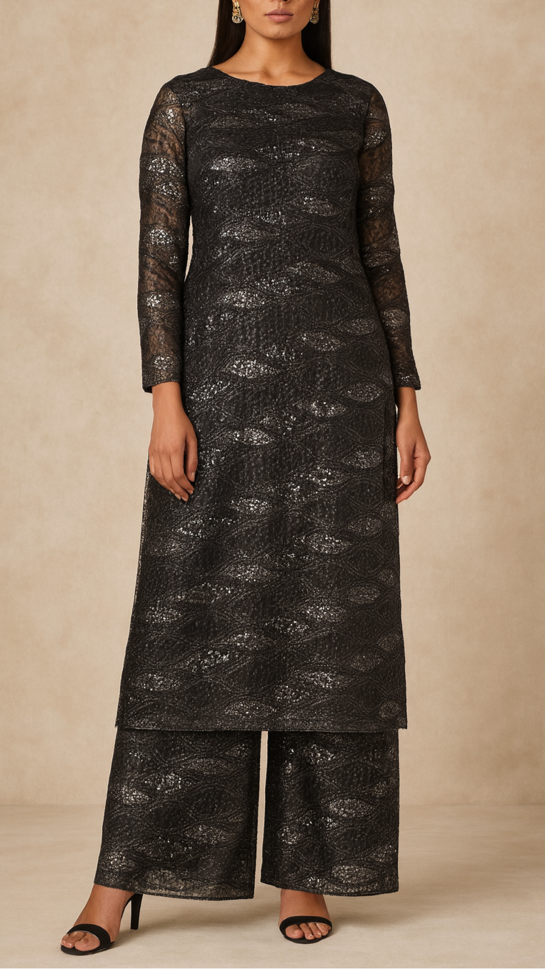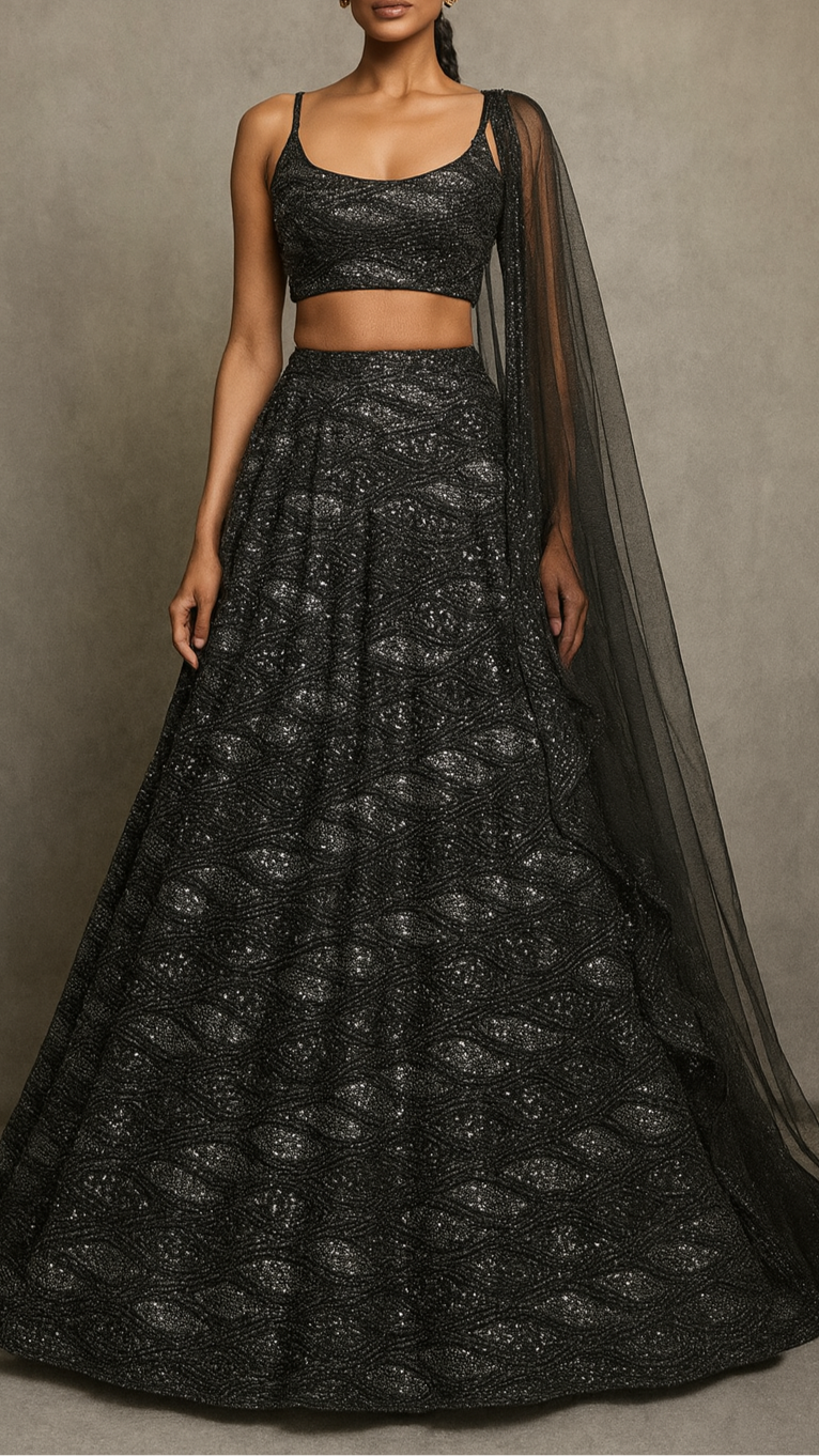Fabric Name | Black Georgette Fabric With All Over Thread And Sequins Work |
