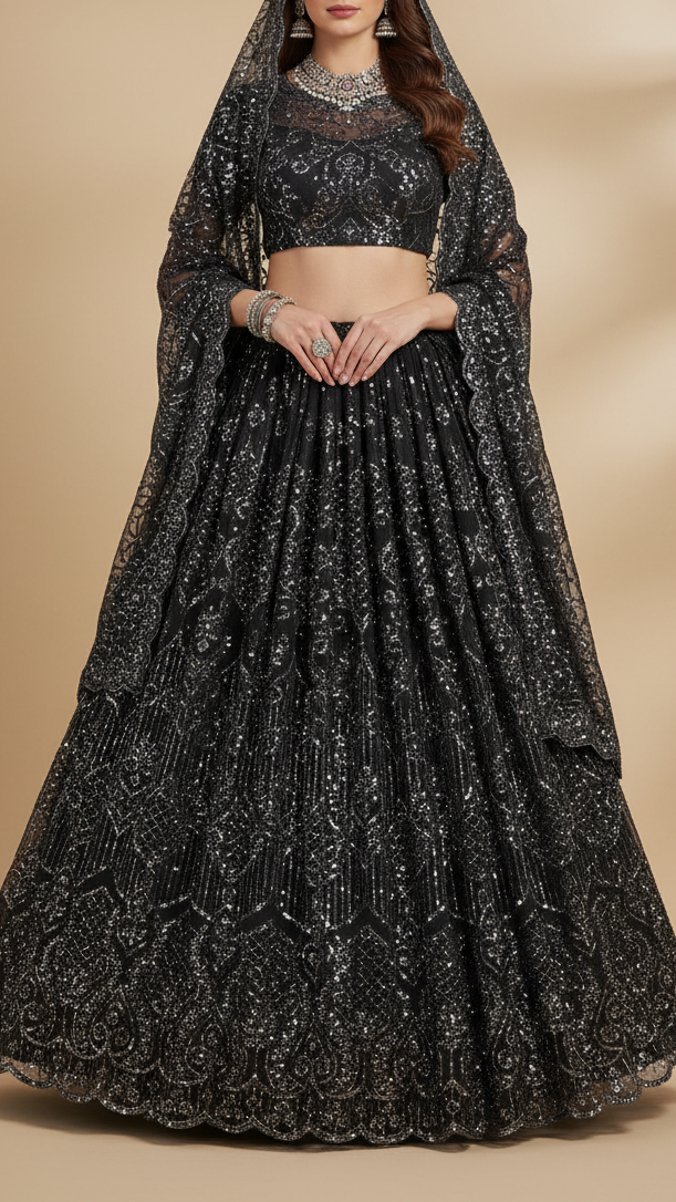 Ideal for designing sarees, dupattas, and lehengas, as well as anarkalis, festive gowns, and party wear outfits. The shimmering sequins and scalloped edge make it perfect for receptions, festive occasions, and evening wear, offering a glamorous yet elegant appeal.