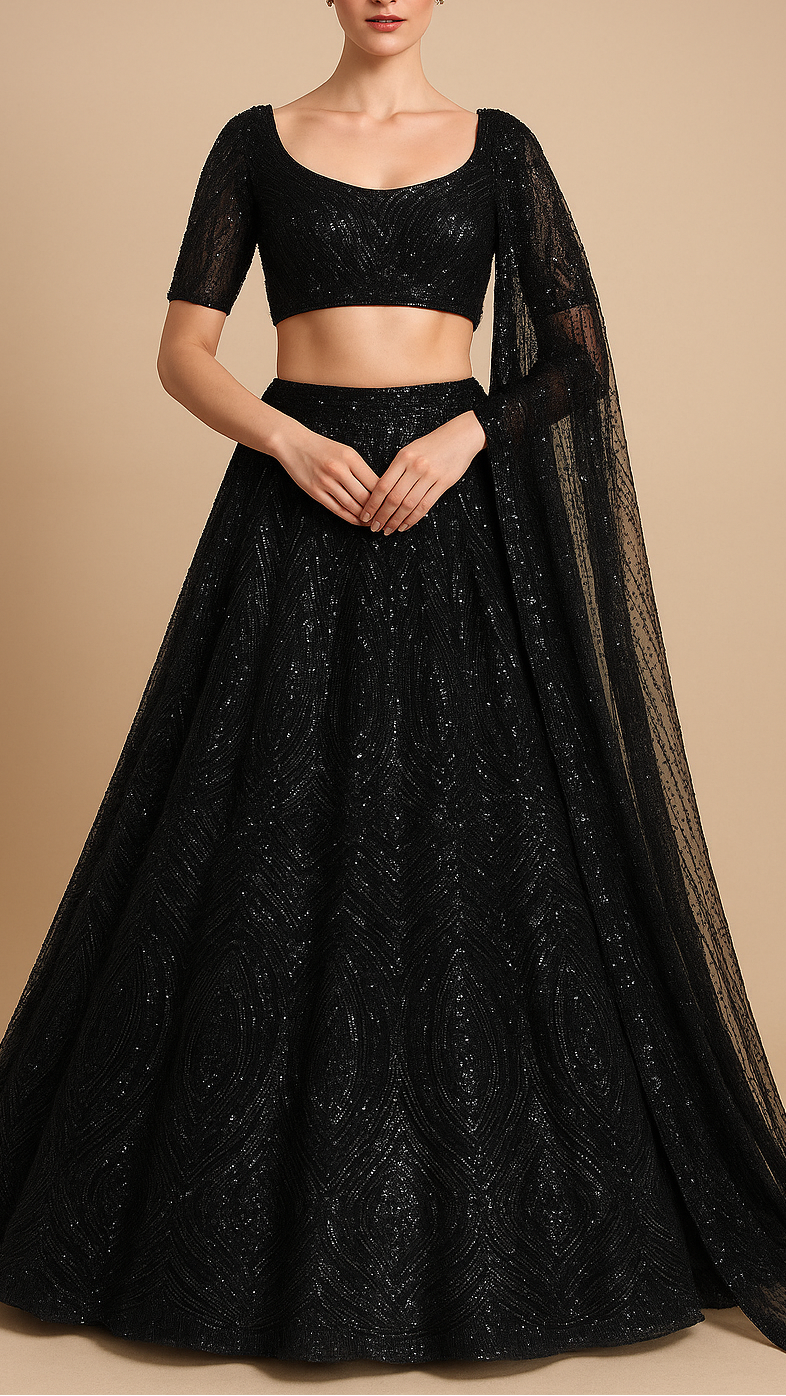 Fabric Name | Black Imported Net Fabric With All Over Bead And Sequins Work |