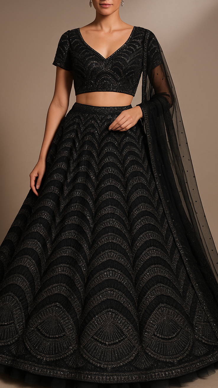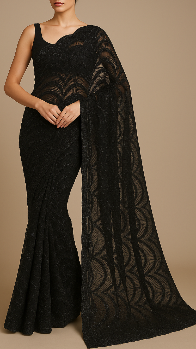 | Fabric Name | Black Imported Net Fabric With All Over Bead And Sequins Work With One Side Border |