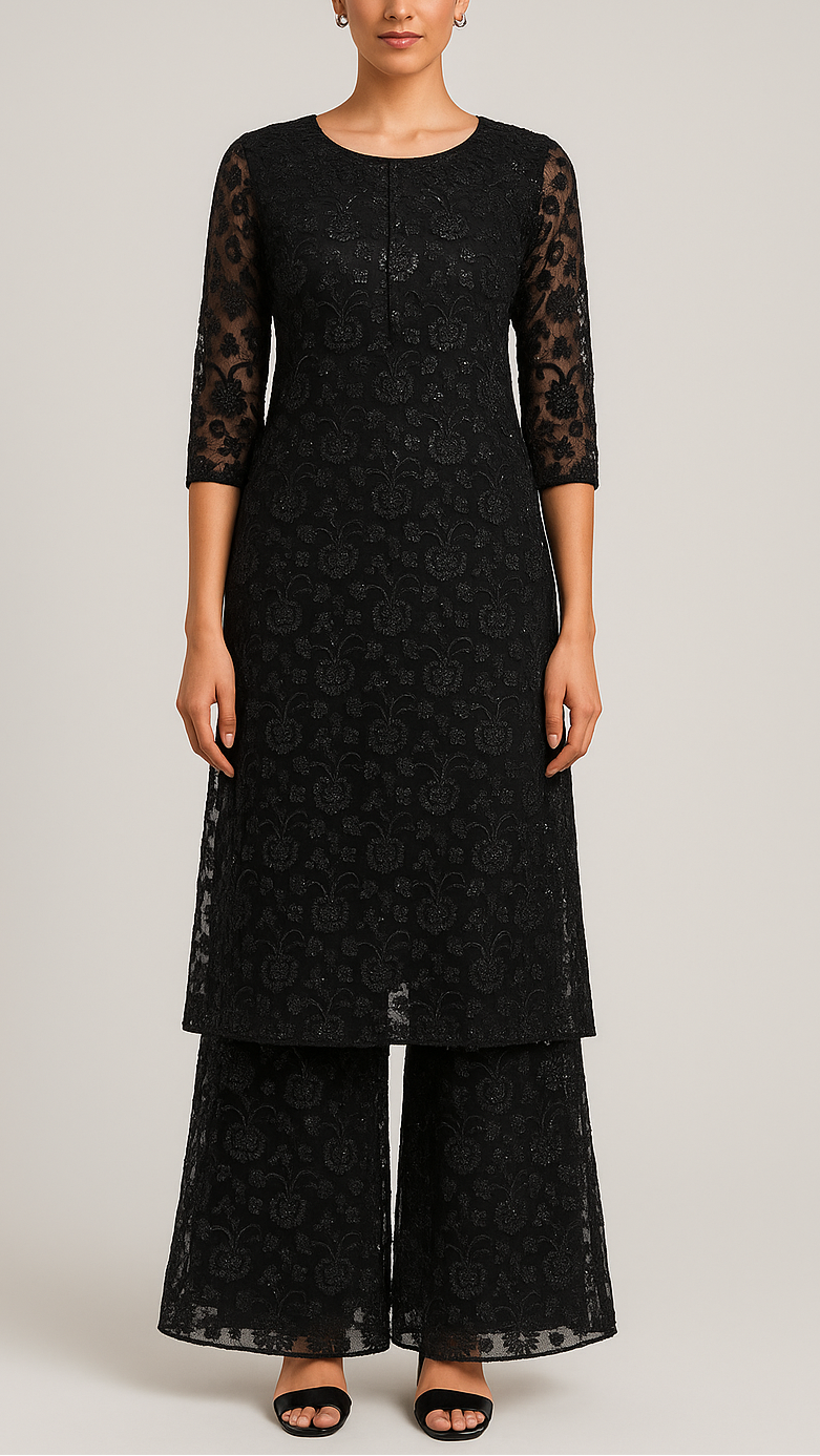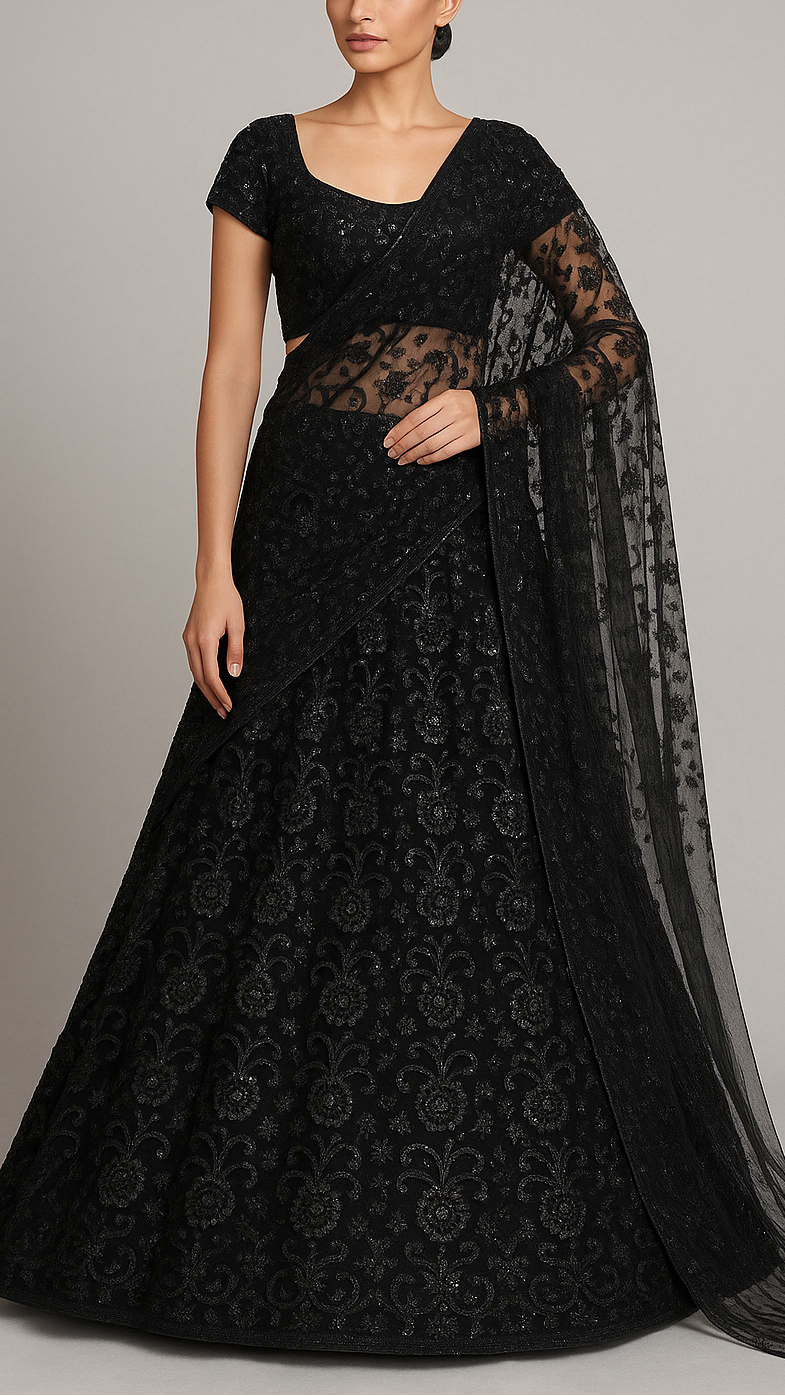 | Fabric Name | Black Imported Net Fabric With All Over Sequins And Bead Work |