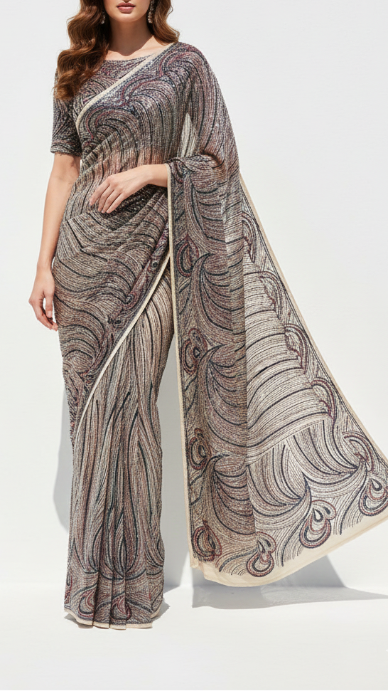Ideal for sarees, dupattas, and statement panels where a strong border and subtle sheen are key to creating an elegant, eye-catching look.