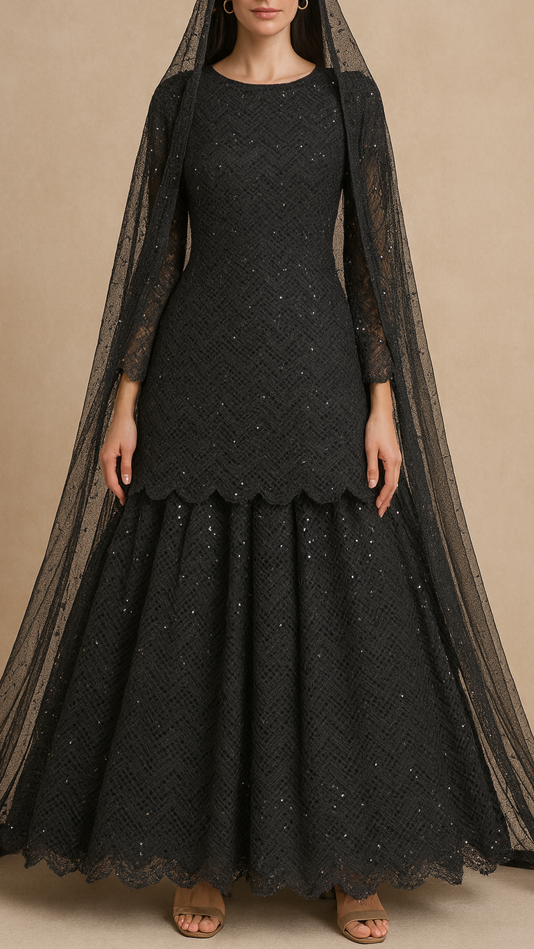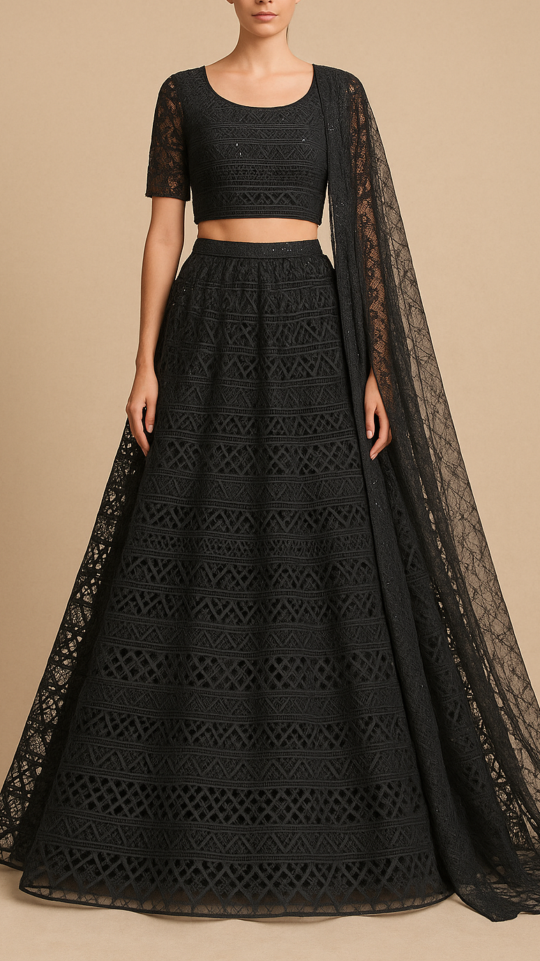 | Fabric Name | Black Imported Net Fabric With All Over Thread And Sequins Work |