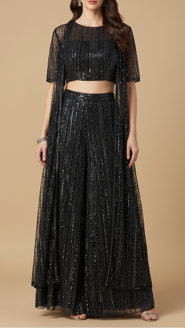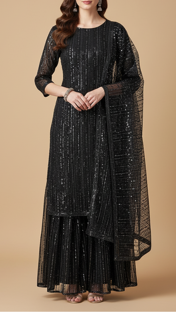 | Fabric Name | Black Imported Net Fabric with Allover Bead & Sequins Work |
