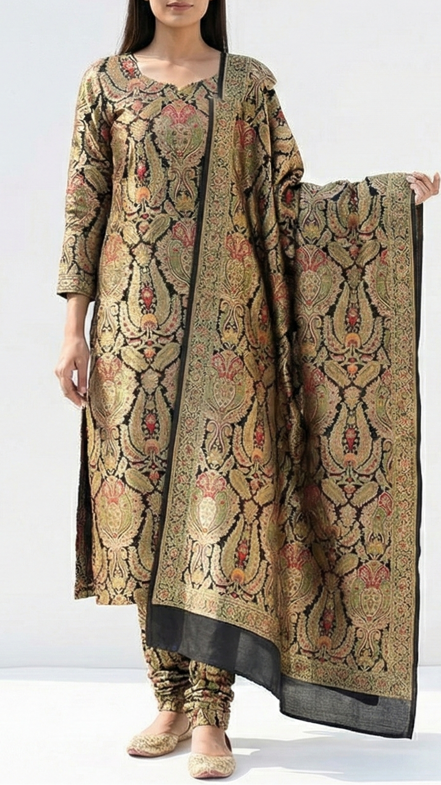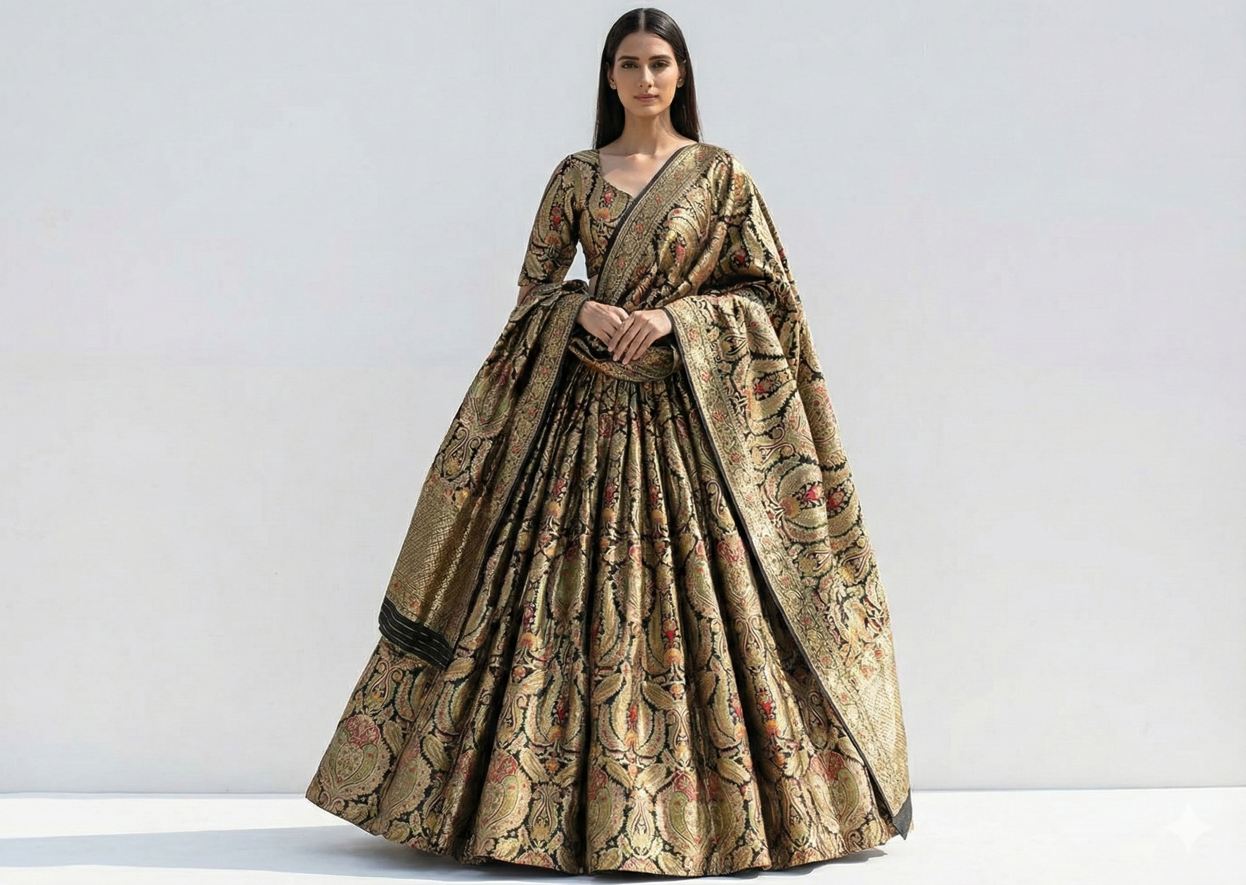 | Fabric Name | Black Pure Banarasi Brocade Fabric With All Over Thread And Zari Handloom |