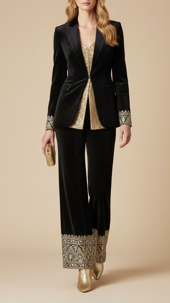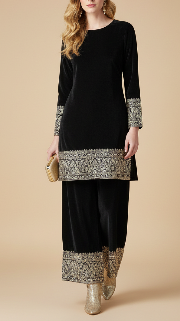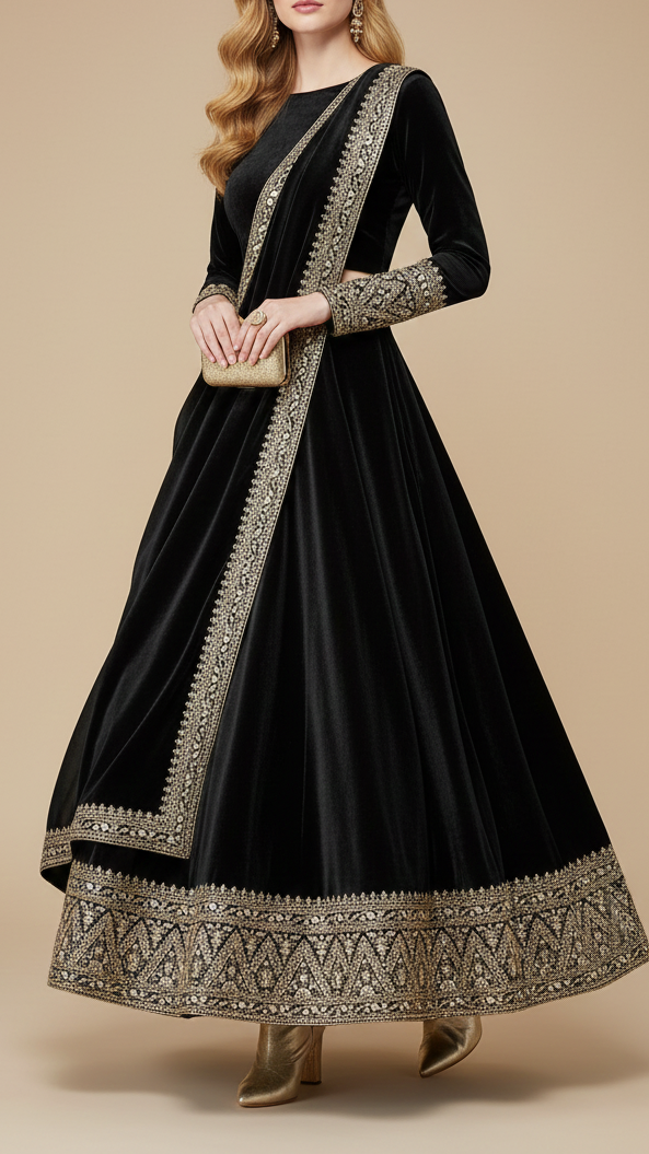 | Fabric Name | Black Velvet Fabric With One Side Heavy Border Of Zari And Sequins |