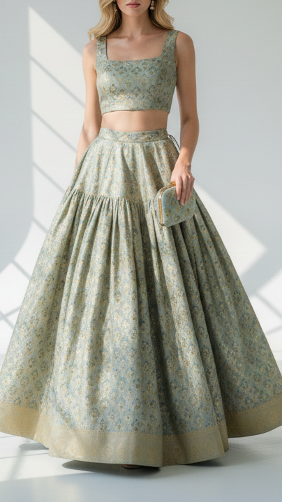 Perfect for lehenga, sarees, anarkalis, jackets, ethinic jumpsuits, sherwani, etc. The rich look of this fabric is ideal for festive outfits, wedding attire & traditional wear.