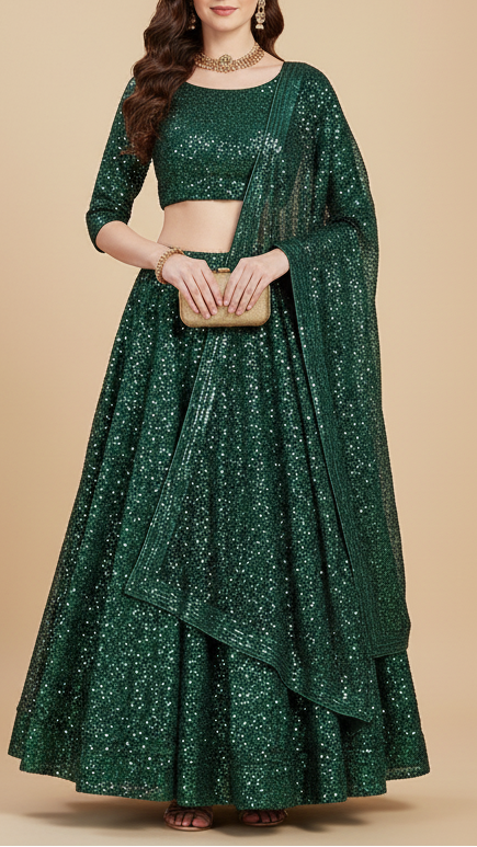 | Fabric Name | Bottle Green Georgette Fabric With Allover Sequins Work |