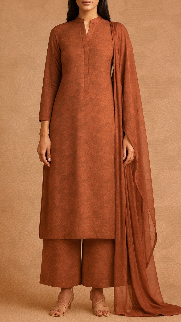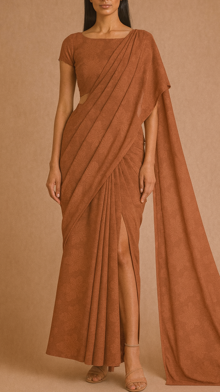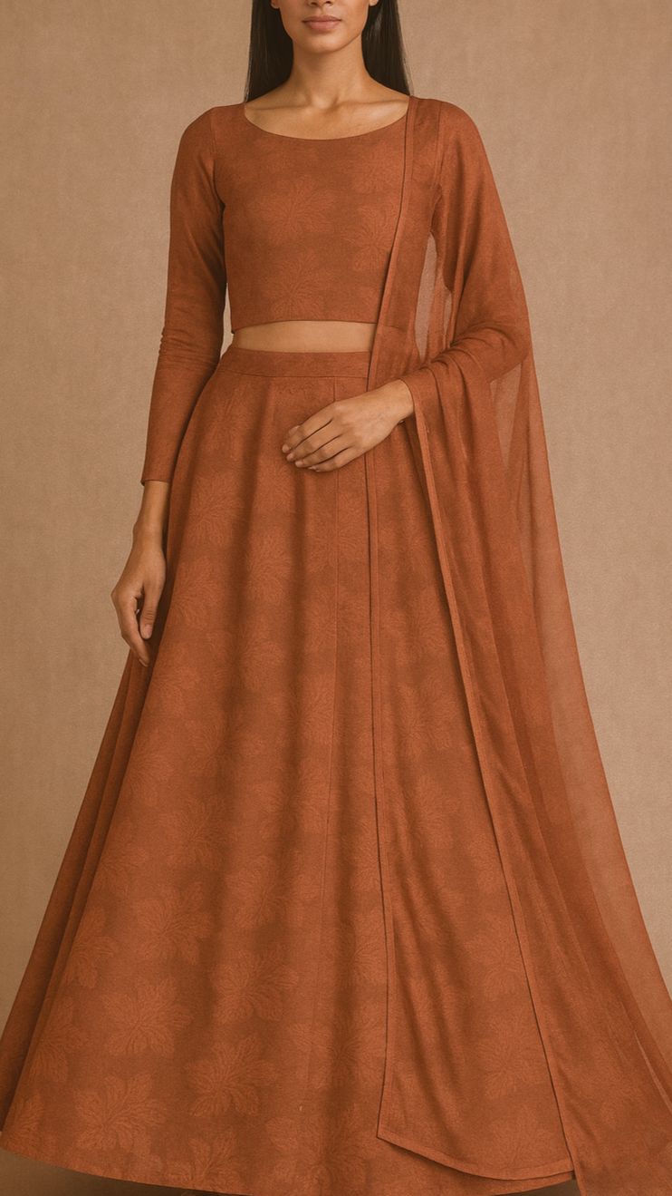 Fabric Name | Brown Georgette Fabric With All Over Self Work |