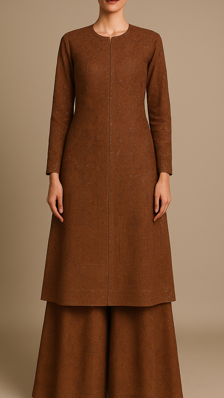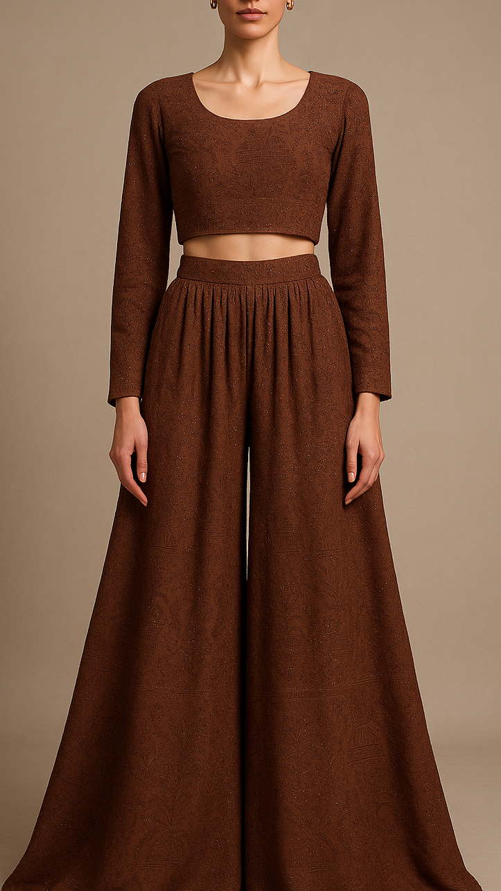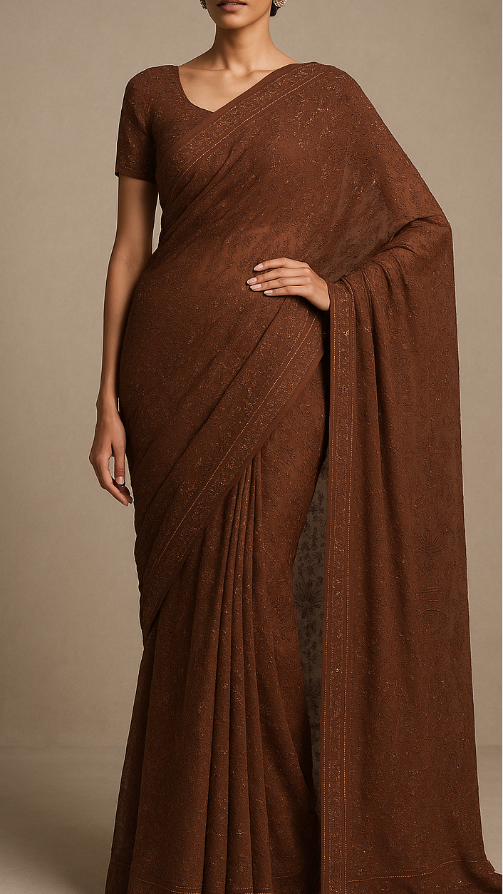 | Fabric Name | Brown Georgette Fabric With Allover Zari, Thread And Swarovski Work |