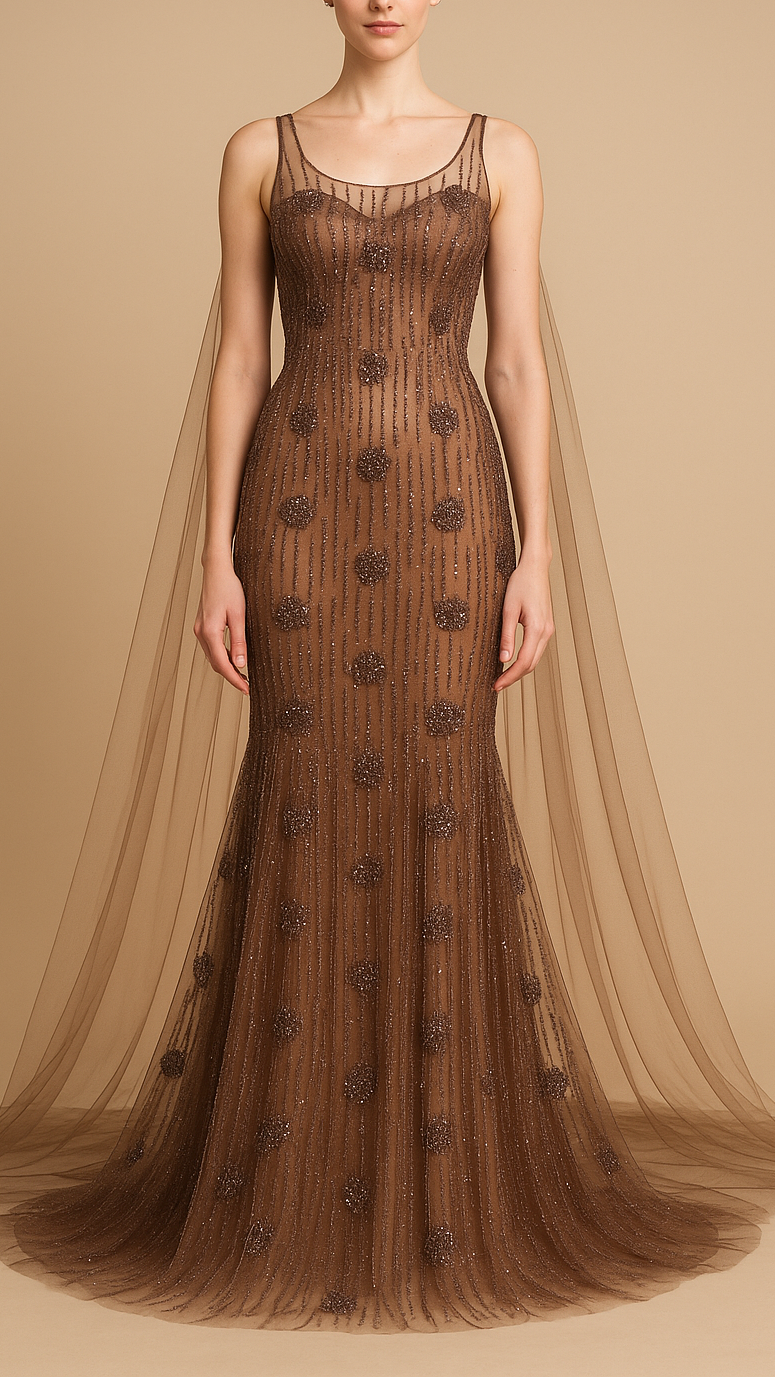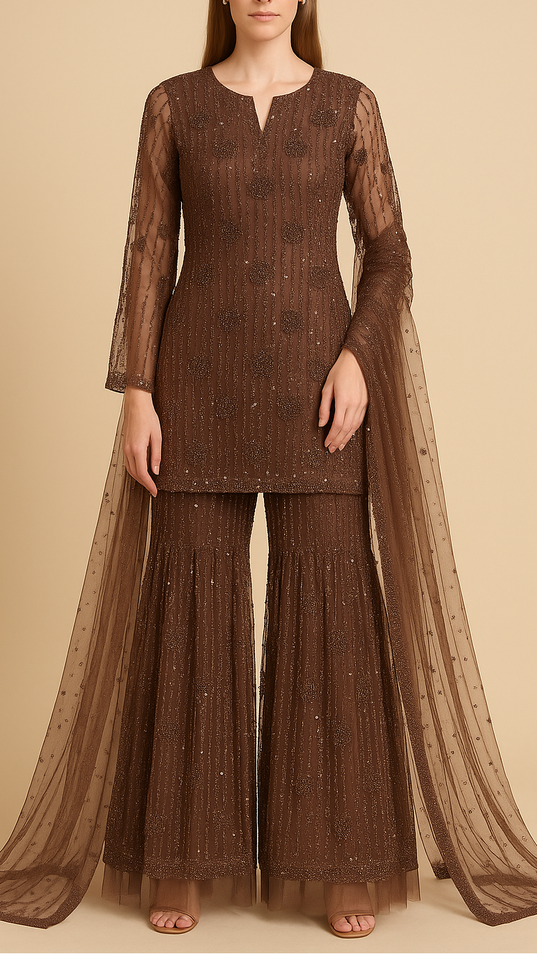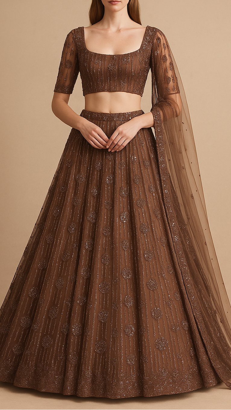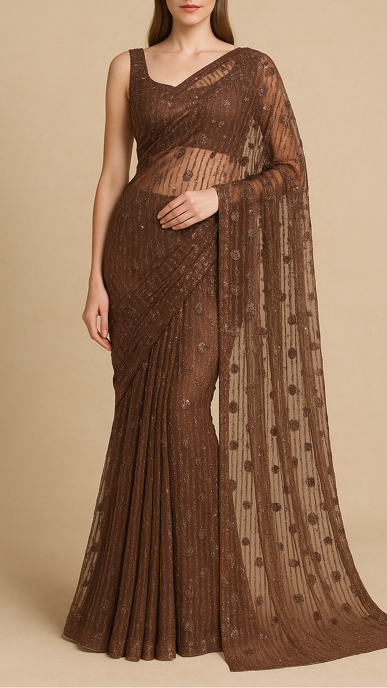 | Fabric Name | Brown Imported Net Fabric With All Over Bead And Sequins Work |