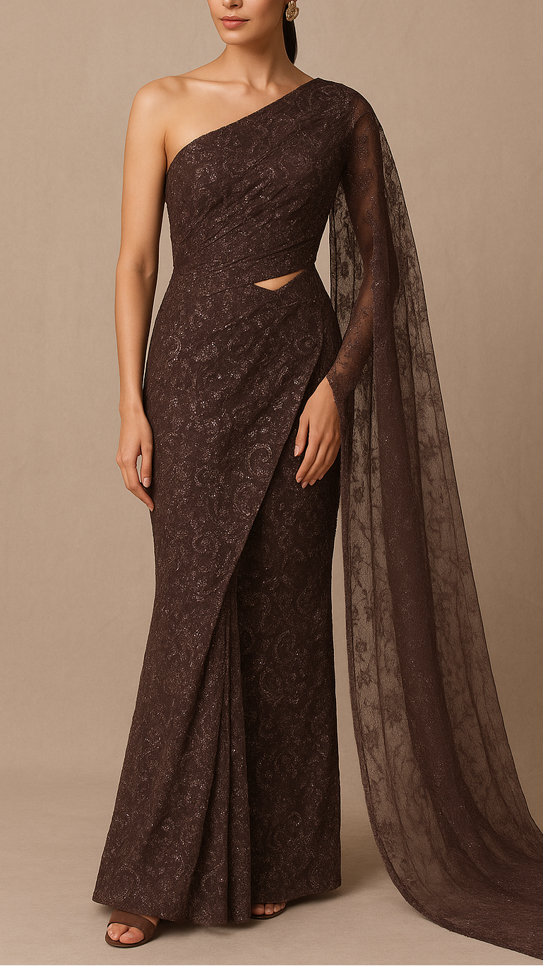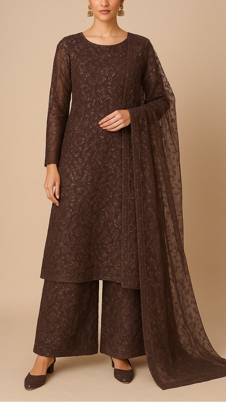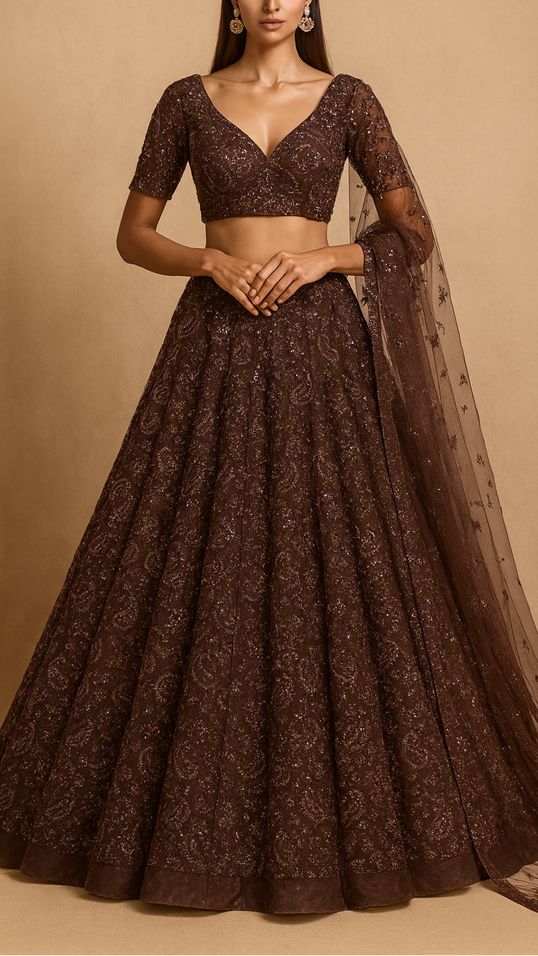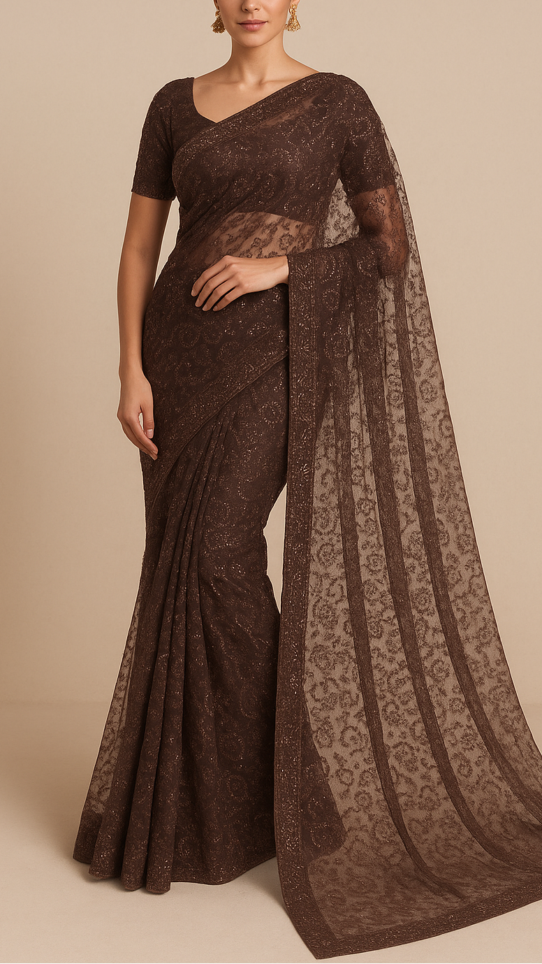 | Fabric Name | Brown Imported Net Fabric With All Over Sequins And Bead Work |