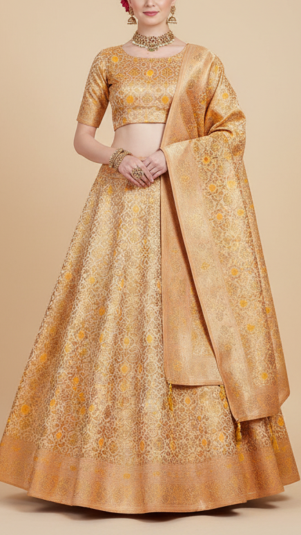 | Fabric Name | Cream Banarasi Brocade Fabric with Allover Golden Zari Handloom |