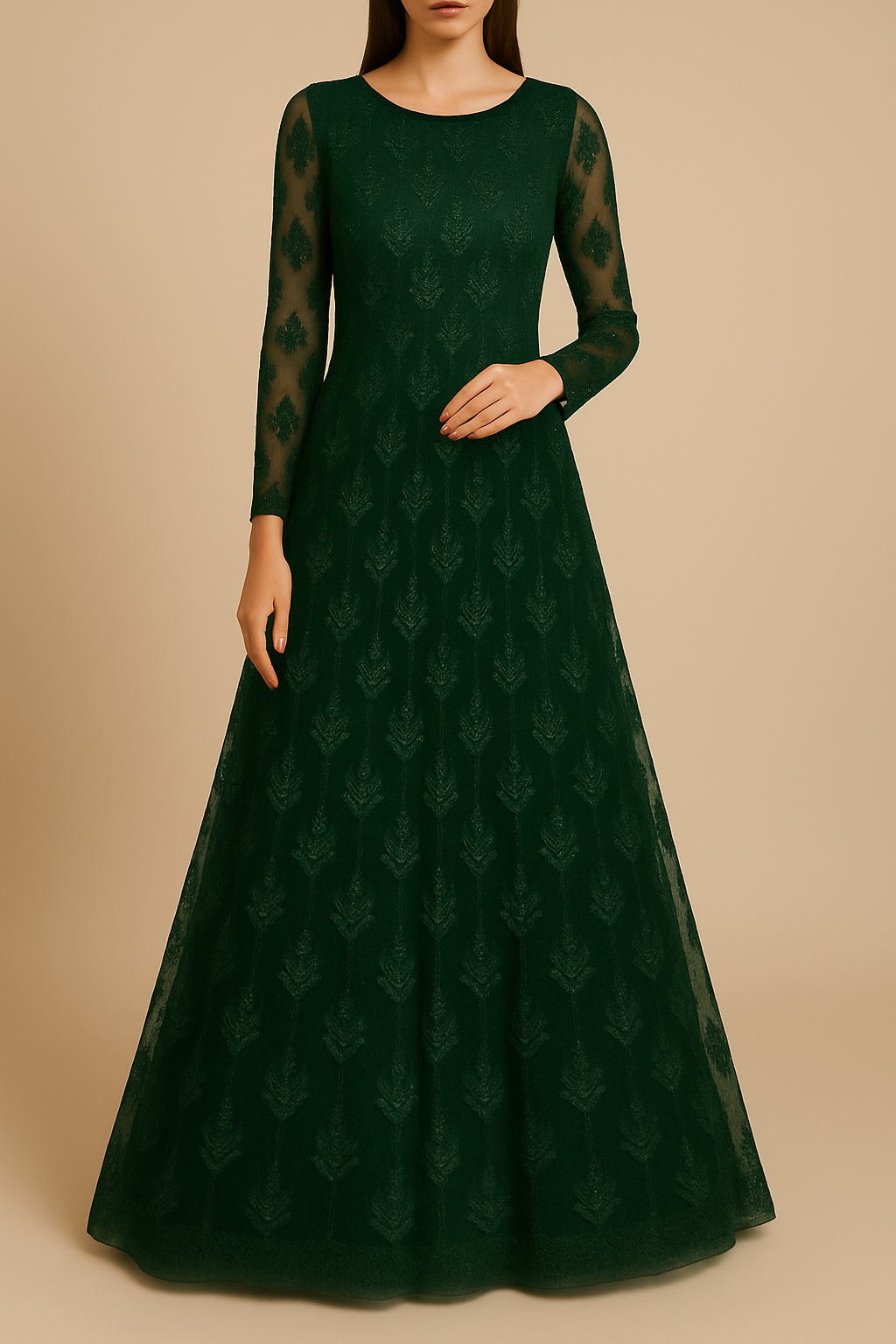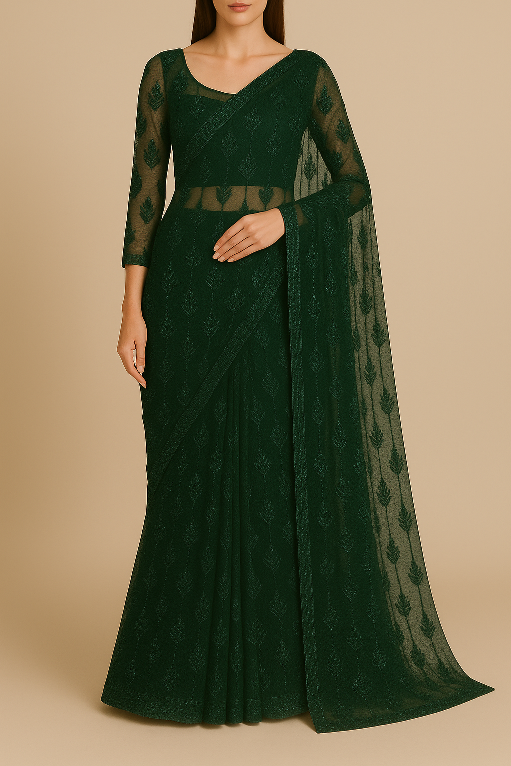 Dark Green Imported Net Fabric With All Over Sequins And Bead Work 16281