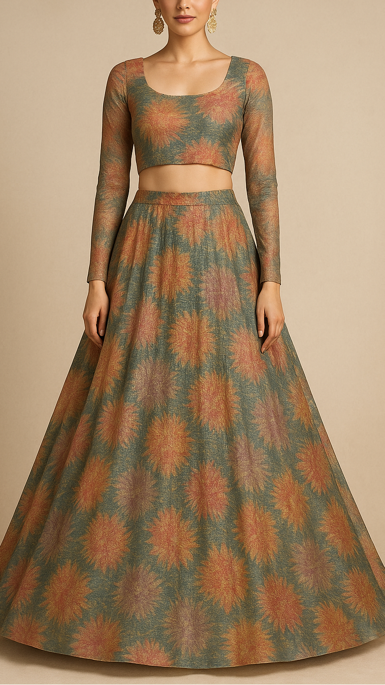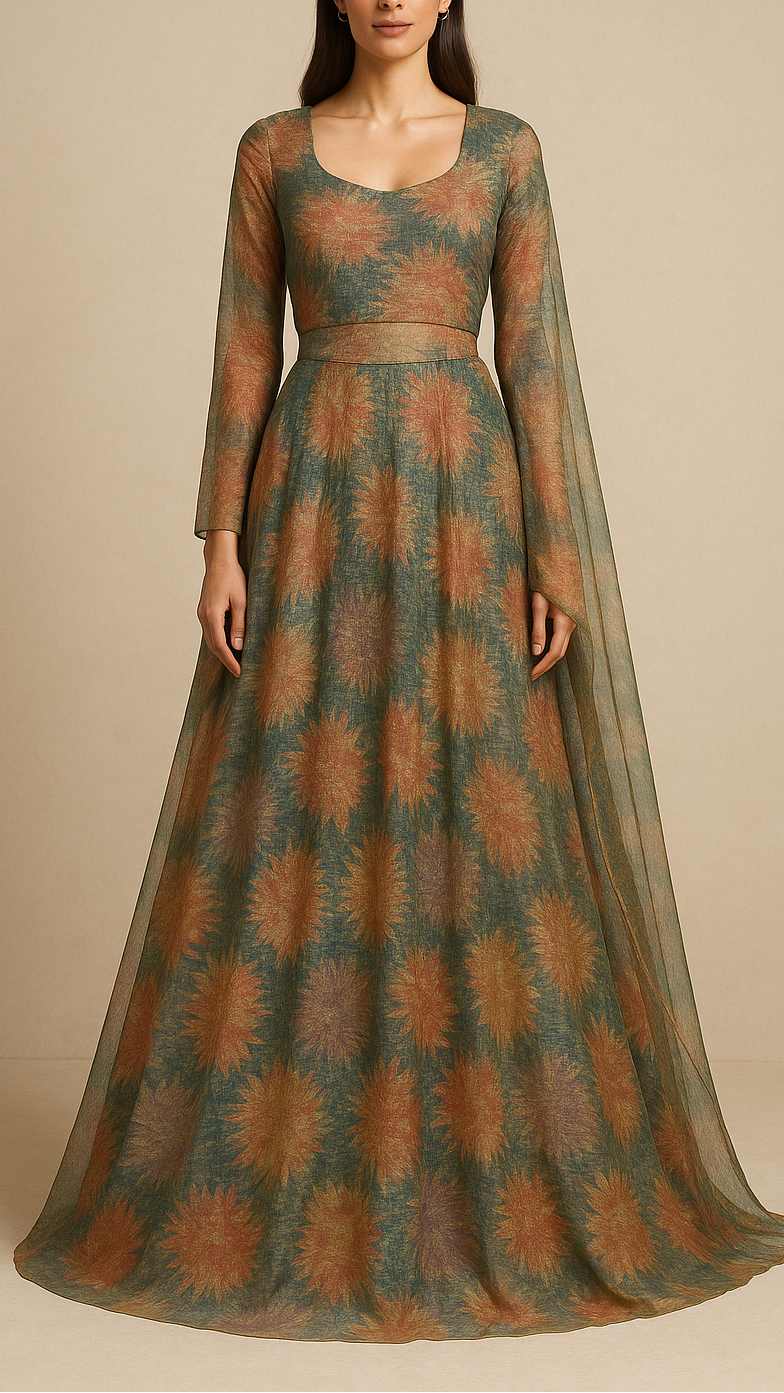 Ideal for sarees, lehengas, gowns, and dupattas, this fabric blends floral freshness with a luxurious sheen. Its printed design makes it suitable for festive celebrations, wedding events, and elegant daytime occasions.