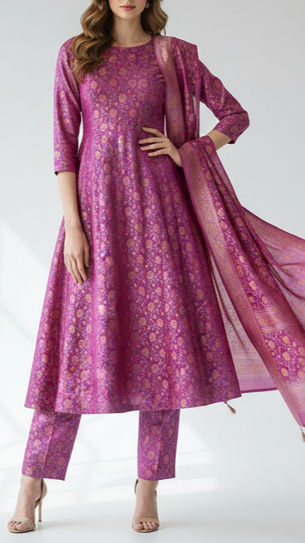 | Fabric Name | Dark Lavender Banarasi Brocade Fabric With All Over Thread And Zari Handloom |