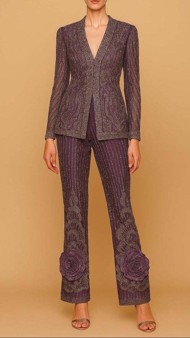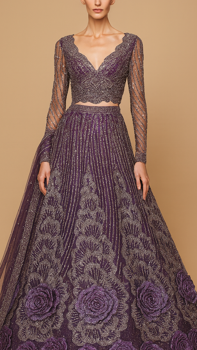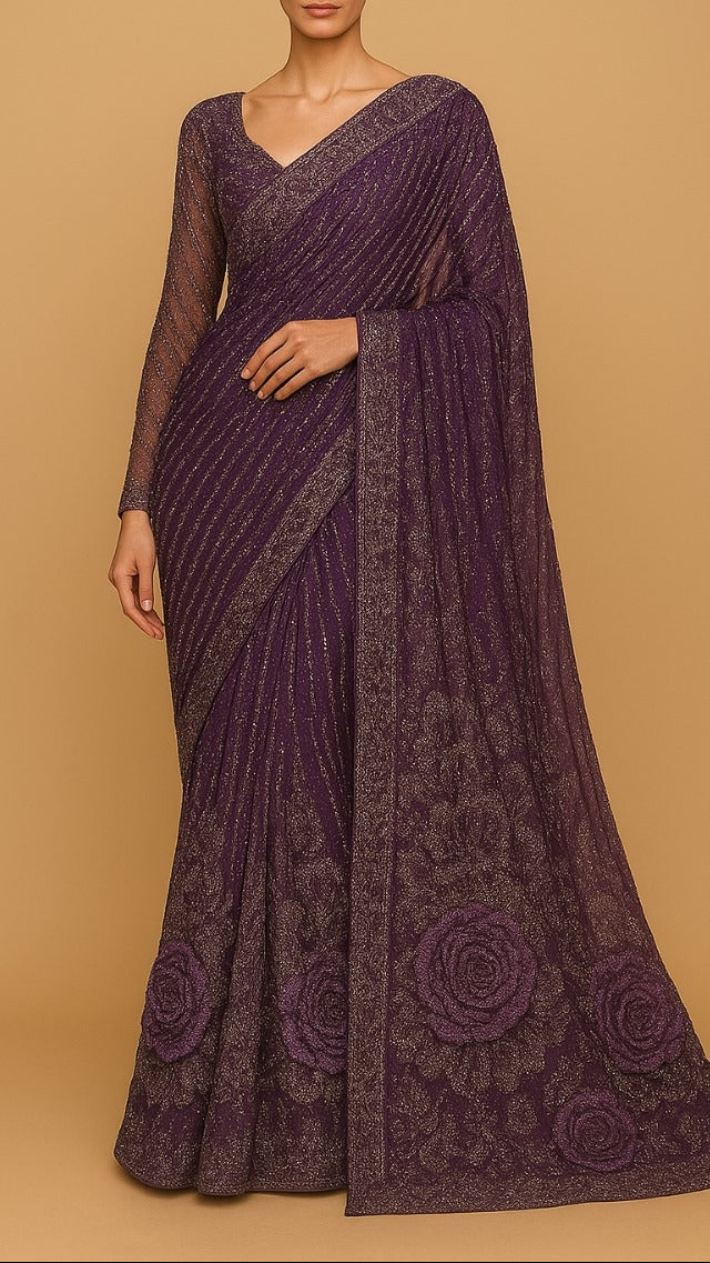 | Fabric Name | Deep Purple Imported Net Fabric With All Over Bead And Sequins And One Side Applique Work Border |