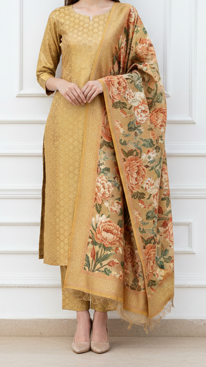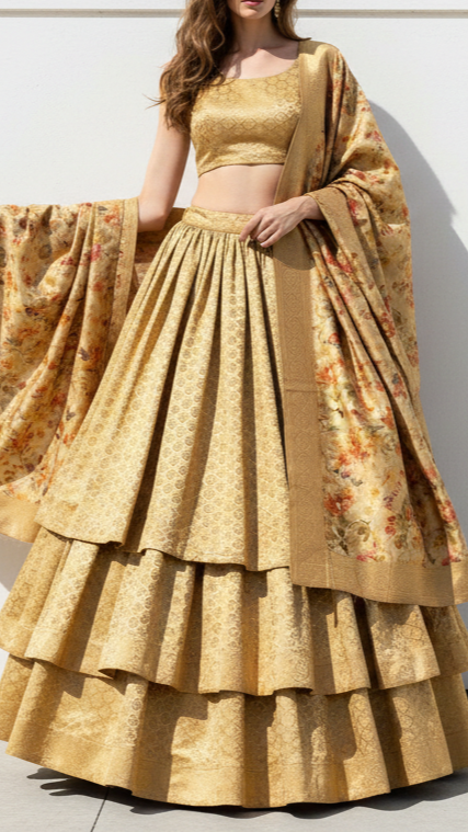 | Fabric Name | Golden Banarasi Brocade Fabric With All Over Golden Zari Handloom |