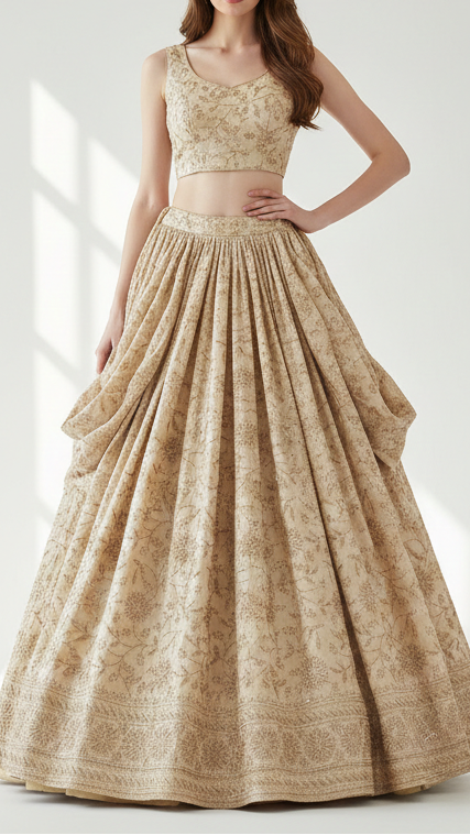 | Fabric Name | Golden Dyeable Tissue Fabric With All Over Zari And Katdana Work With One Side Border |