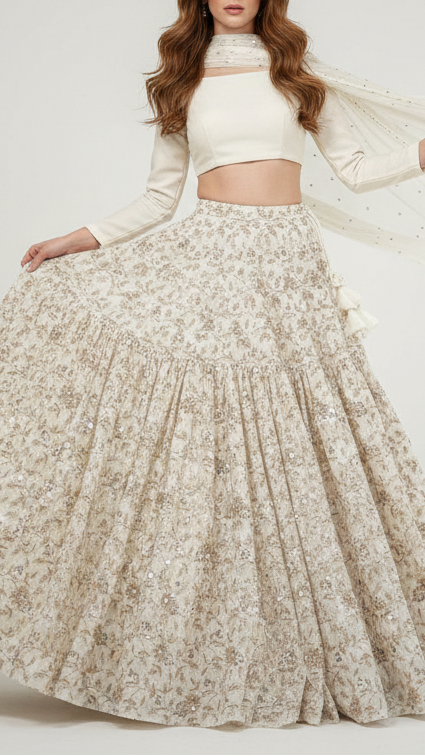 | Fabric Name | Golden Dyeable Tissue Fabric With All Over Zari, Sequins And Beads Work |