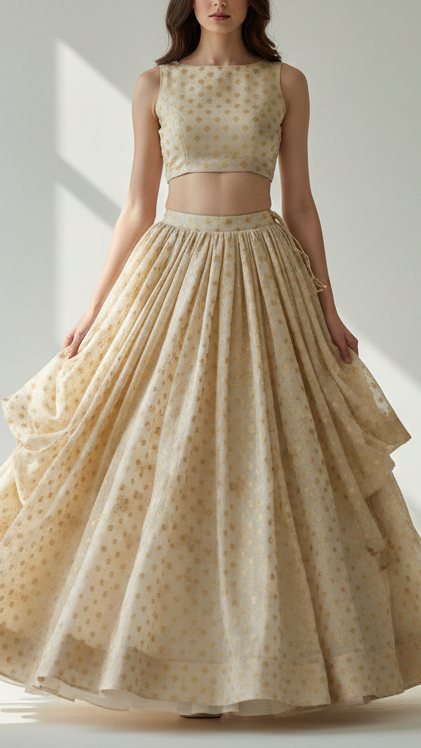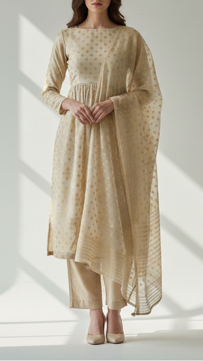 Ideal for lehenga, sarees, anarkalis, jackets, ethinic jumpsuits, sherwani, etc. The rich look of this fabric is ideal for festive outfits, wedding attire & traditional wear.