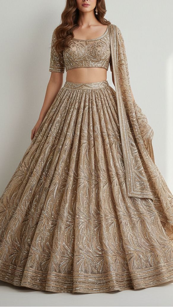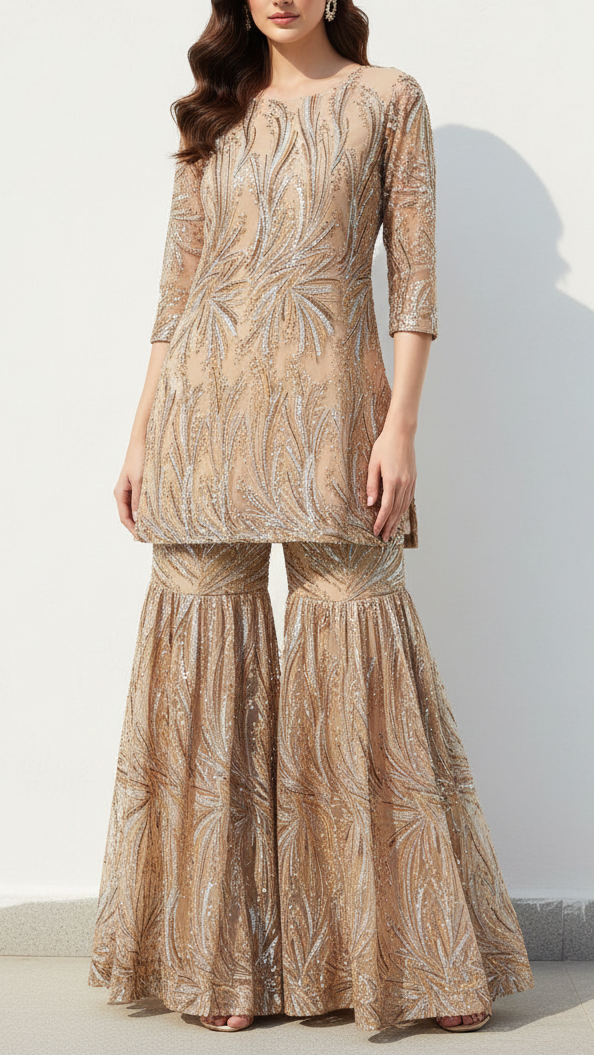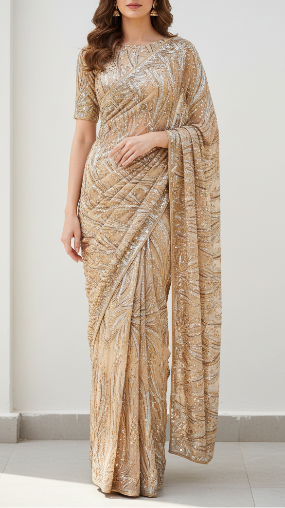 | Fabric Name | Golden Imported Net Fabric With All Over Sequins And Bead Work |