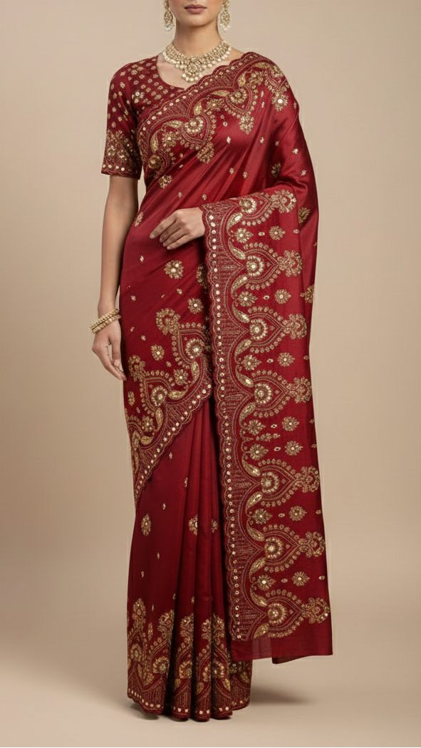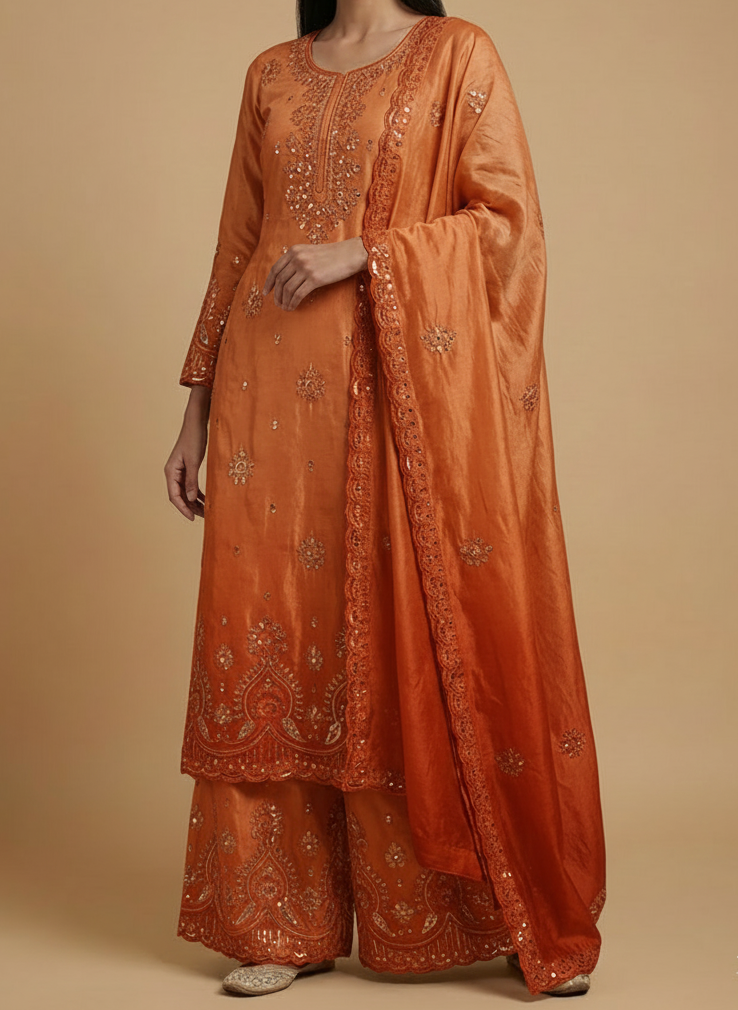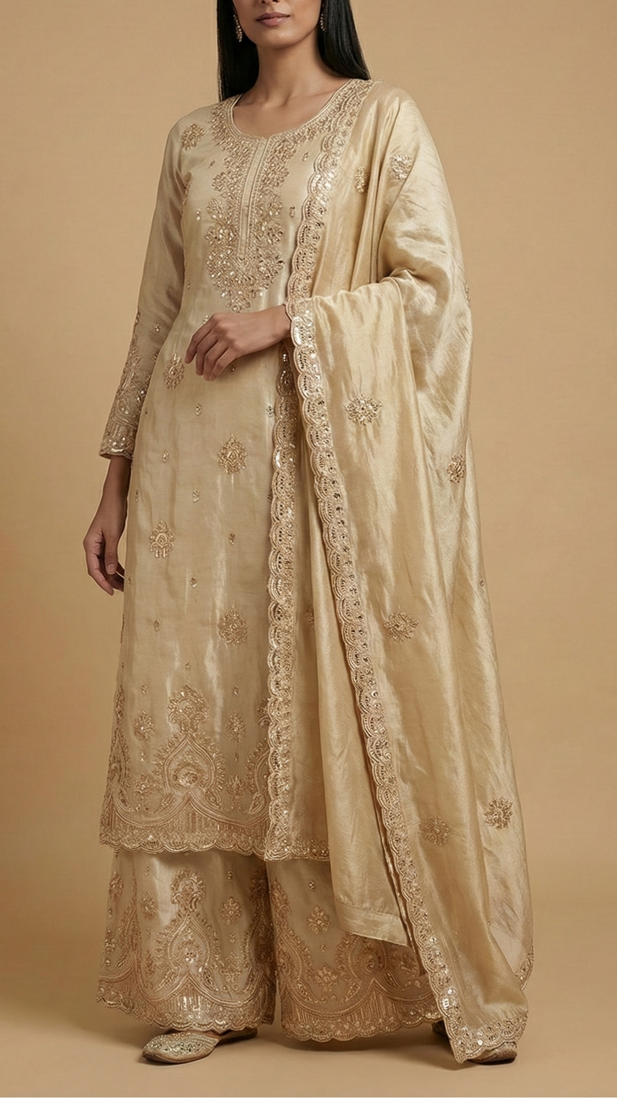 Perfect to pair with silk, georgette, or brocade suits, lehengas, and anarkalis. The intricate zari and gota patti detailing make it ideal for weddings, festive occasions, and traditional celebrations, offering a royal, radiant, and timeless appeal.