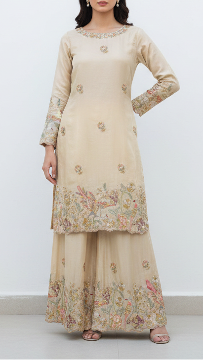 Should you require further assistance, please contact our dedicated customer care team. Provide them with your body dimensions and a sample image of the desired attire. Our experts will ensure you receive precise guidance tailored to your needs, reflecting our commitment to exceptional service and luxury.