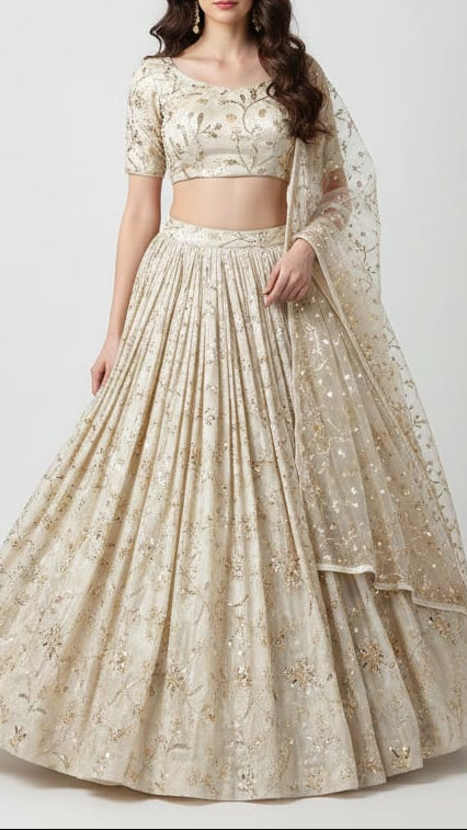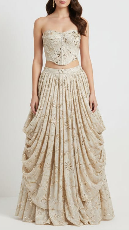 | Fabric Name | Golden Tissue Fabric With Allover Sequins, Zari, Katdana And Bead Work |