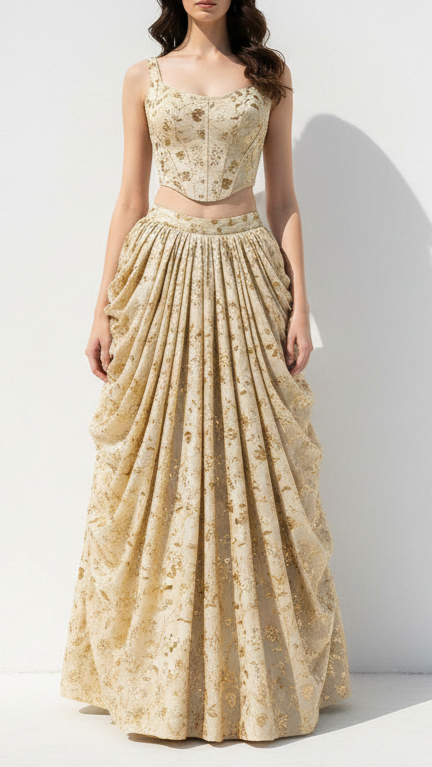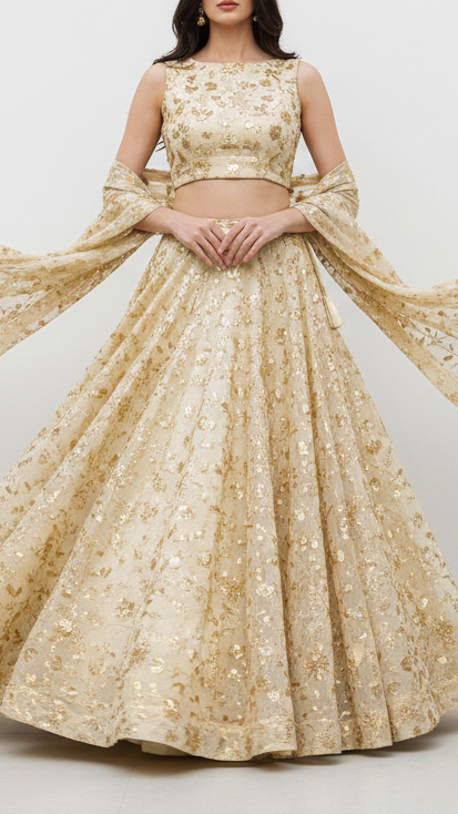 | Fabric Name | Golden Dyeable Tissue Fabric with Allover Zari and Sequins Work |