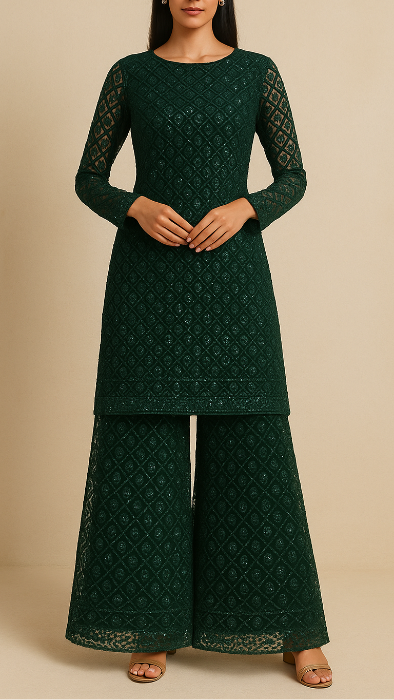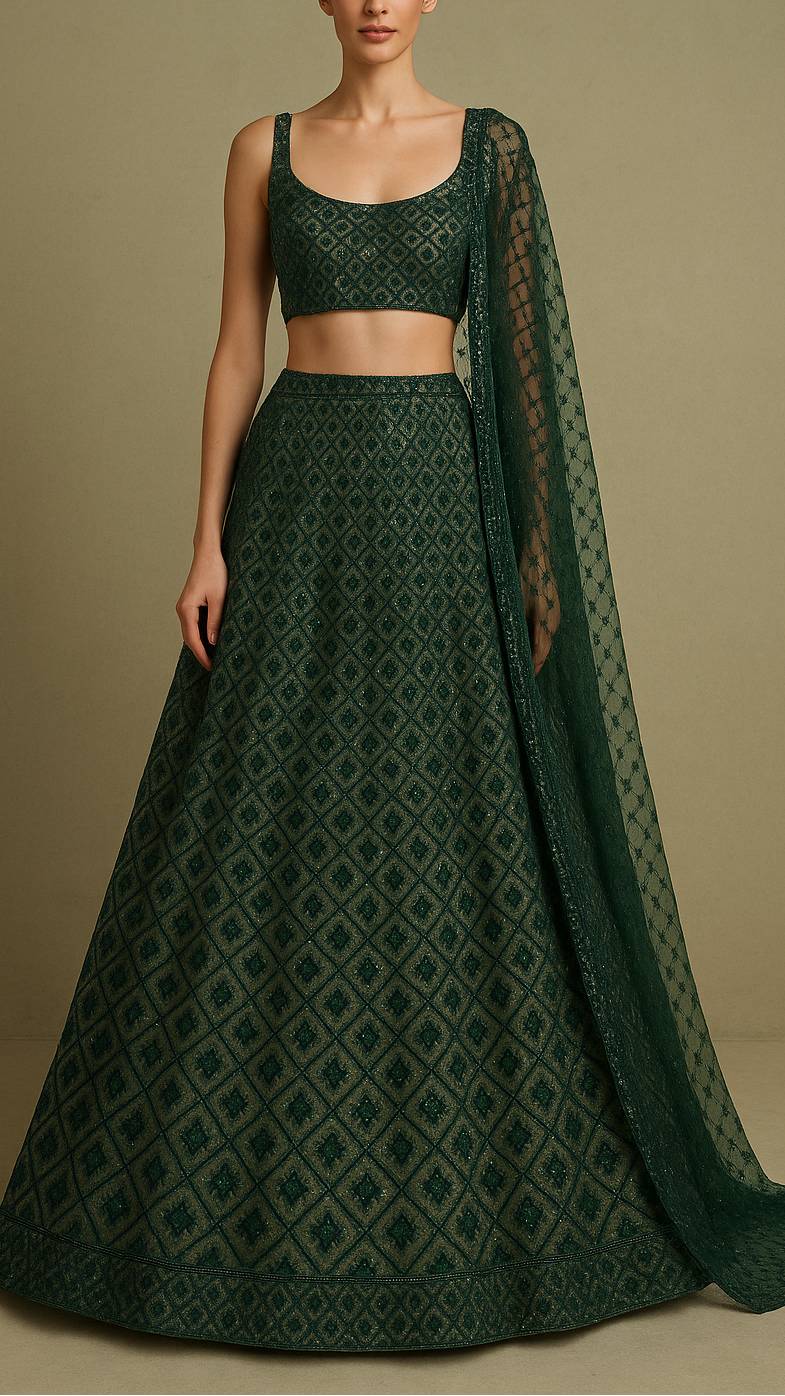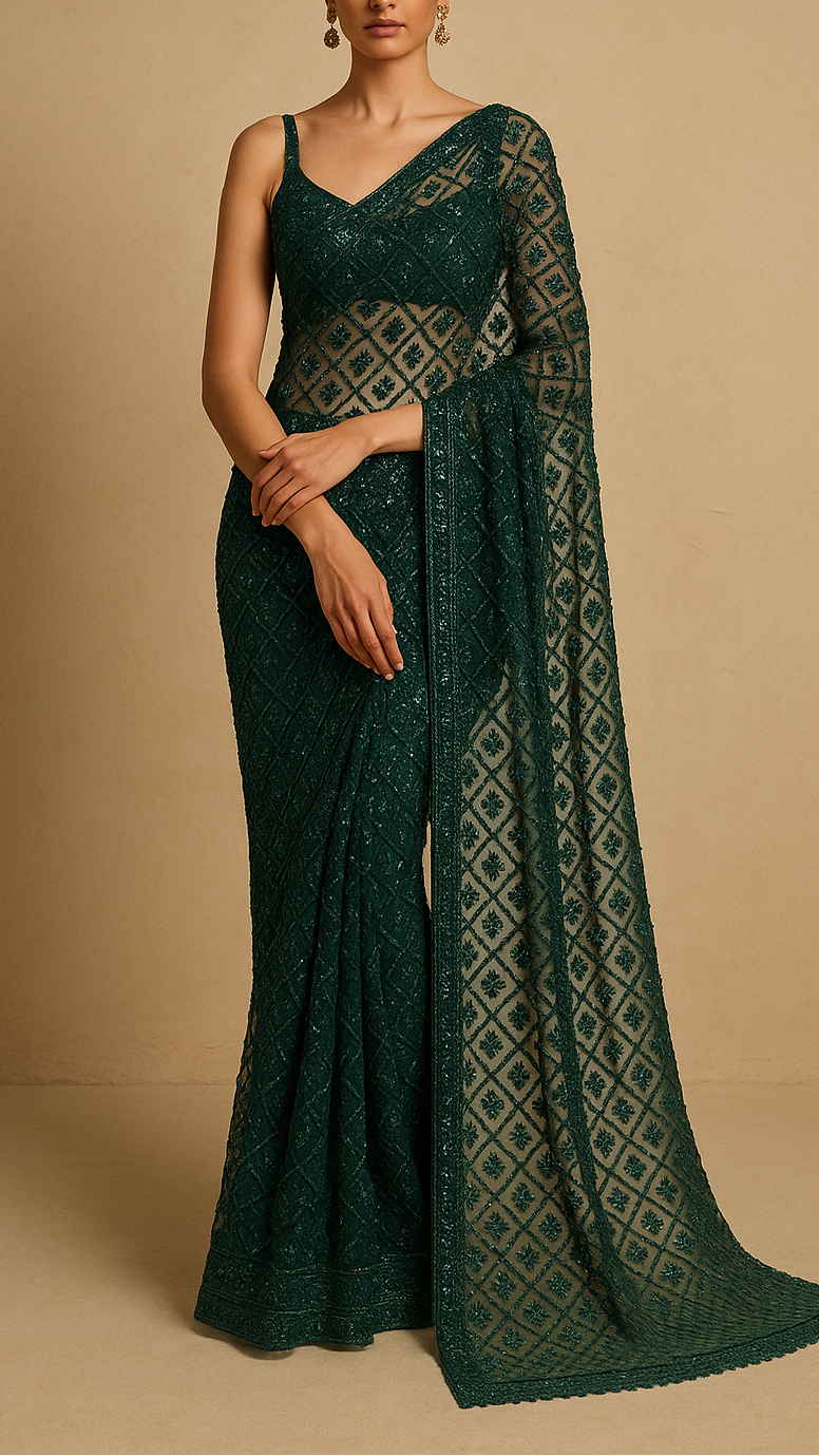 | Fabric Name | Green Net Fabric With All Over Sequins And Bead Work |