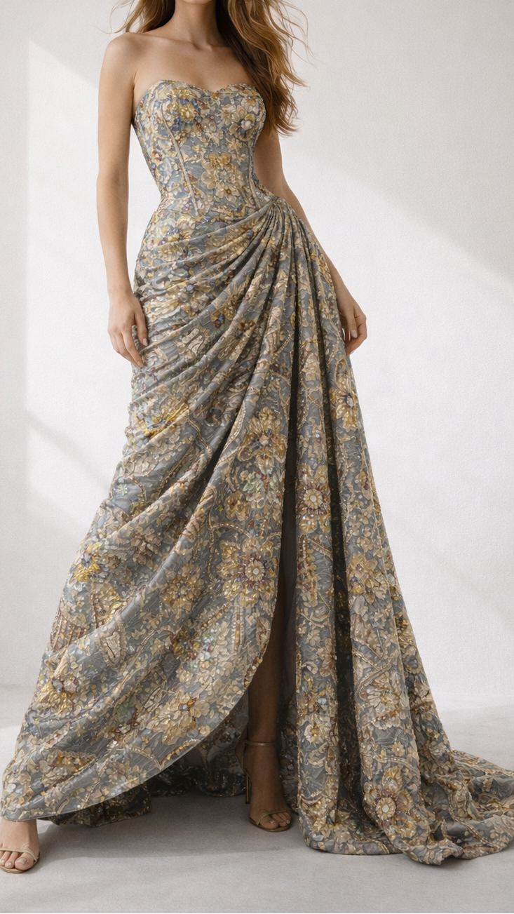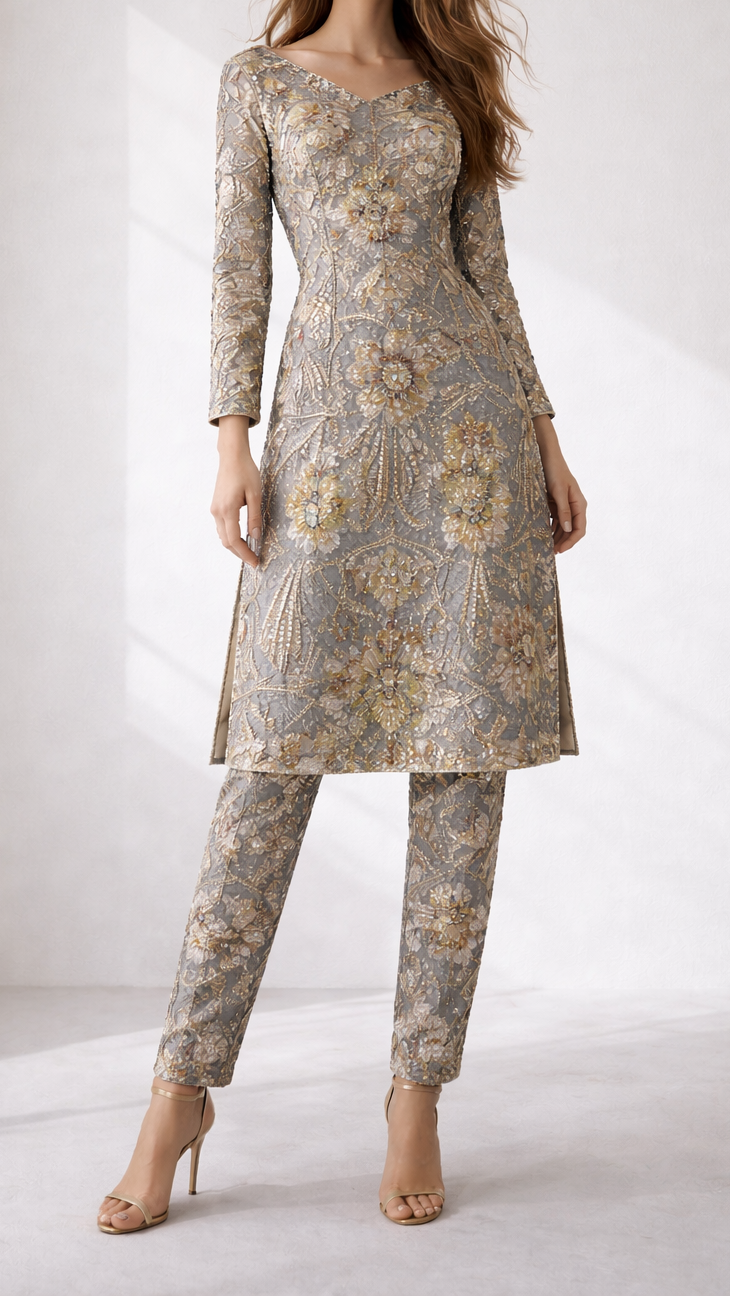 Should you require further assistance, please contact our dedicated customer care team. Provide them with your body dimensions and a sample image of the desired attire. Our experts will ensure you receive precise guidance tailored to your needs, reflecting our commitment to exceptional service and luxury.