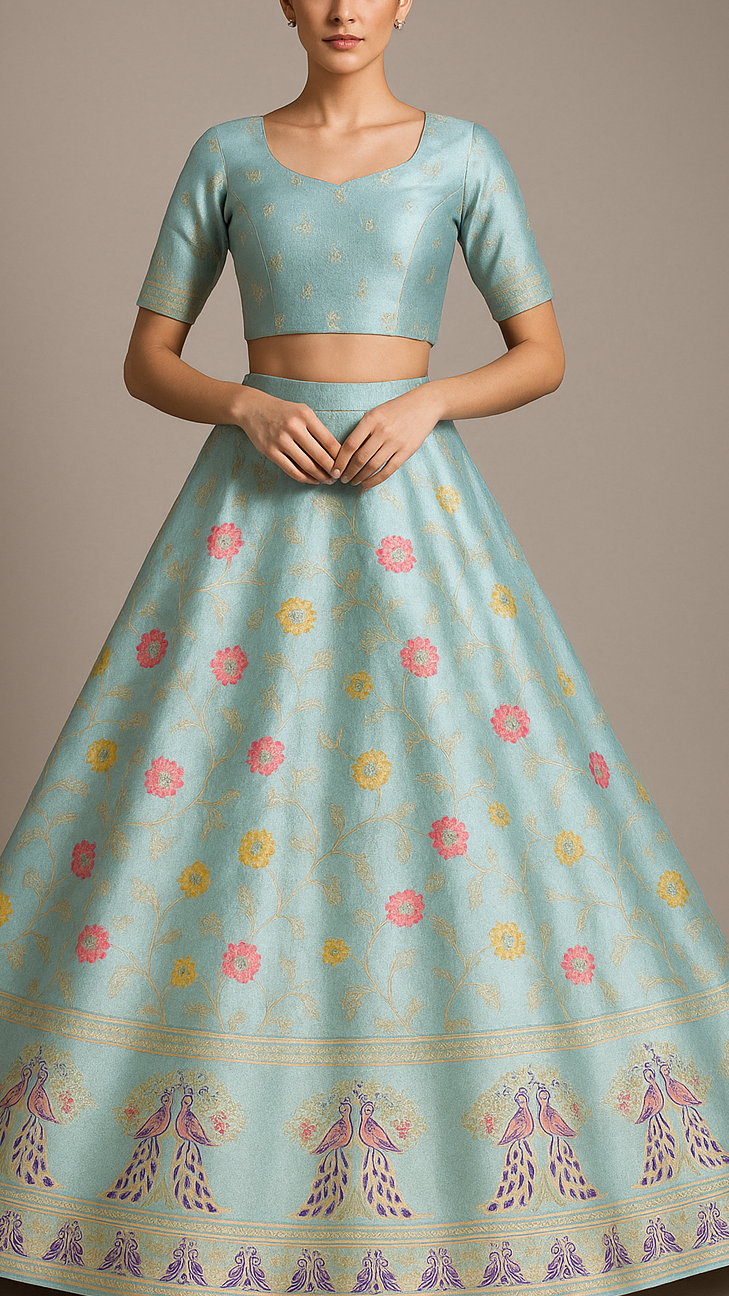 Ideal for sarees, lehengas, gowns, and dupattas. Perfect for weddings, receptions, festive celebrations, and party wear where floral motifs, zari detailing, and a rich border create a statement of elegance and grandeur.