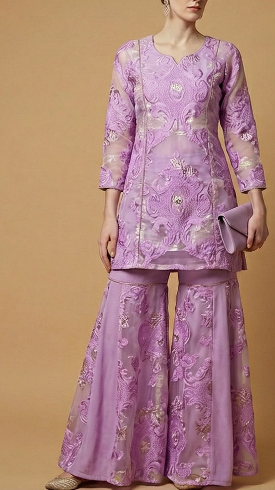 | Fabric Name | Lavender Imported Faux Organza Fabric with All-Over Embossed Work |