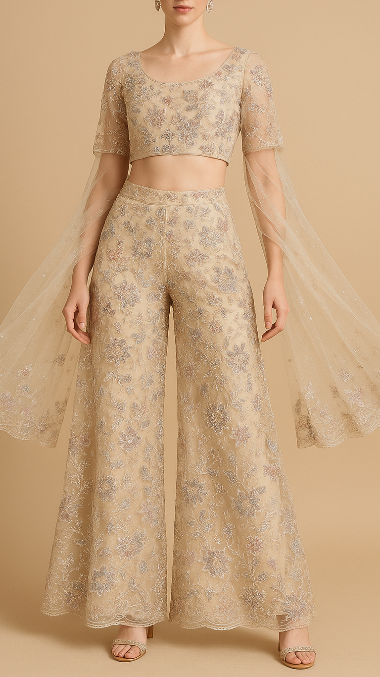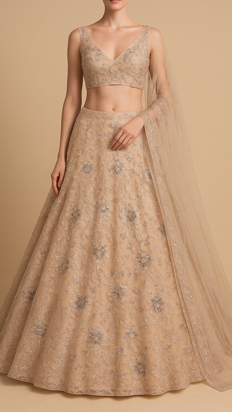 | Fabric Name | Light Cream Net Fabric With All Over Sequins And Bead Work |