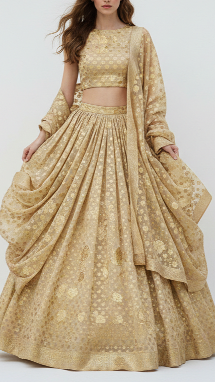 Perfect for lehenga, sarees, anarkalis, jackets, ethinic jumpsuits, sherwani, etc. The rich look of this fabric is ideal for festive outfits, wedding attire & traditional wear.