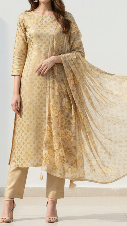 | Fabric Name | Light Golden Banarasi Brocade Fabric With All Over Golden Zari Handloom |