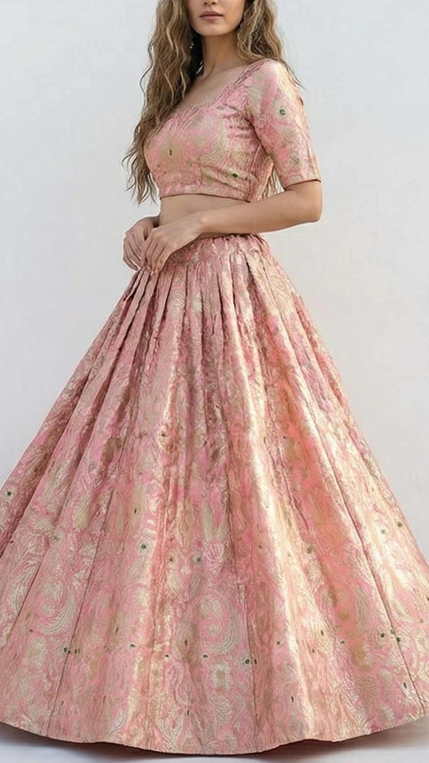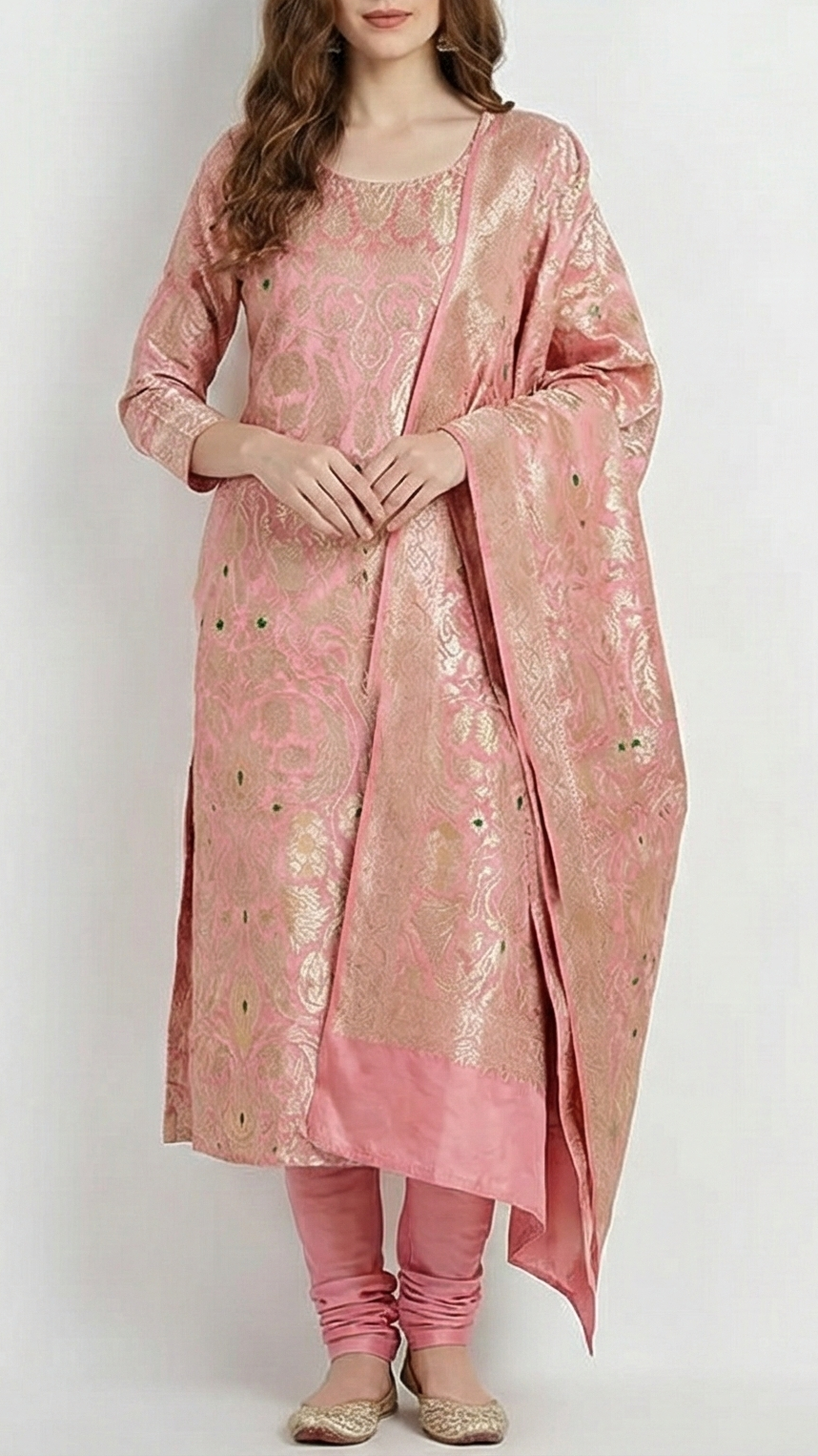 | Fabric Name | Light Pink Pure Banarasi Brocade Fabric With All Over Thread And Zari Handloom |