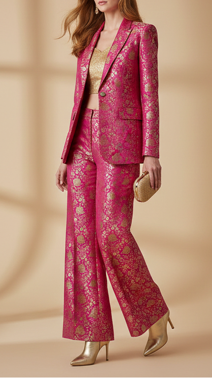 Perfect for sarees, anarkalis, jackets, ethinic jumpsuits, sherwani, etc. The rich look of this fabric is ideal for festive outfits, wedding attire & traditional wear.