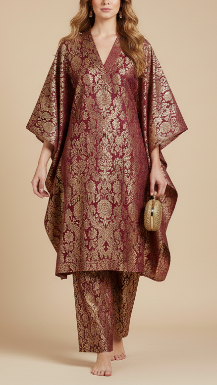 | Fabric Name | Maroon Banarasi Brocade Fabric With All Over Golden Zari Handloom |